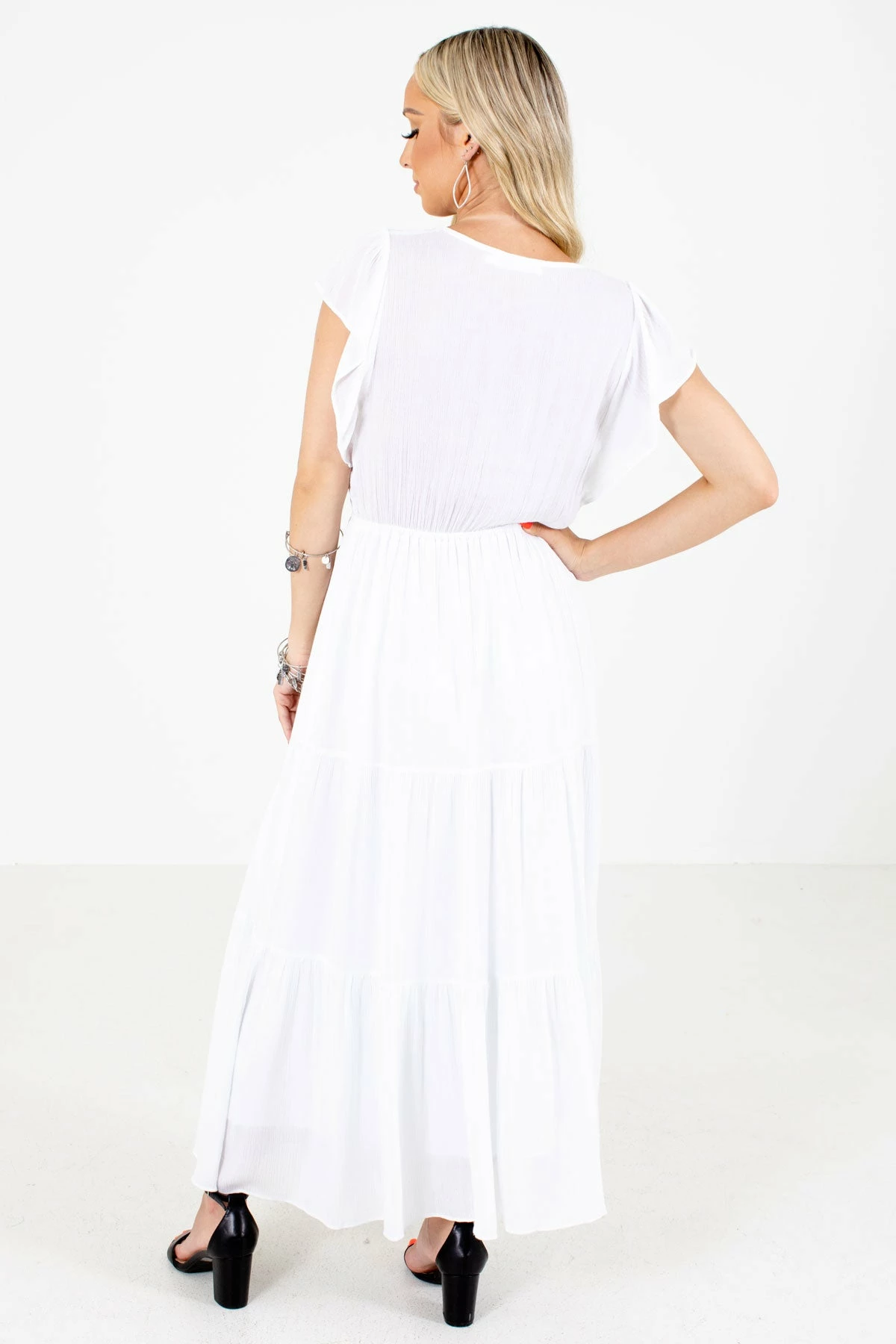 Our More Than a Memory White Maxi Dress is composed of 100% Rayon. Hand wash cold. Hang or lay flat to dry. Please do not bleach.