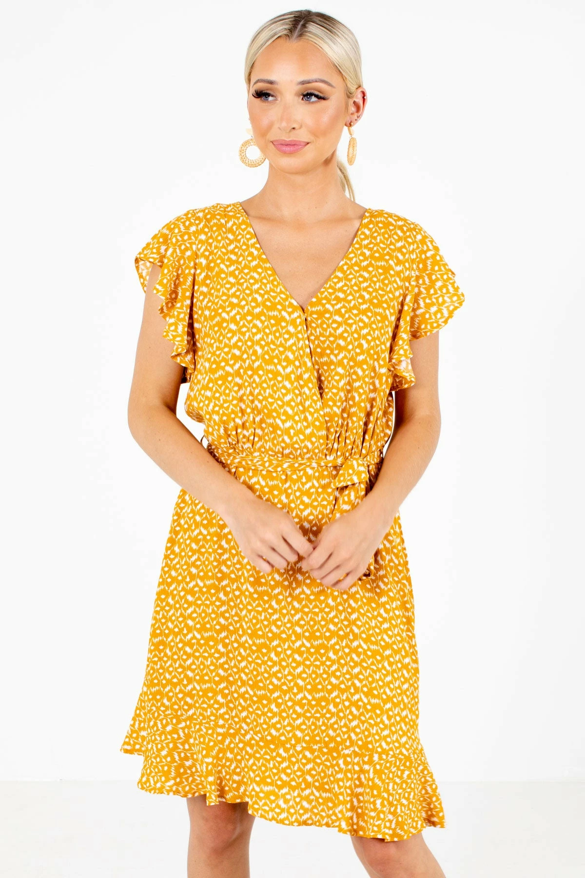 Our new Bold Type Patterned Mini Dress is so fun to wear! This mini length dress features an abstract pattern. We’re in love with the faux wrap bodice, keyhole back, and waist tie detail! The ruffled accents on the sleeves and hem are right on trend for the upcoming season. The full lining adds the perfect finishing touch! Pair our Bold Type Patterned Mini Dress with sleek black heels to recreate our model’s gorgeous look!