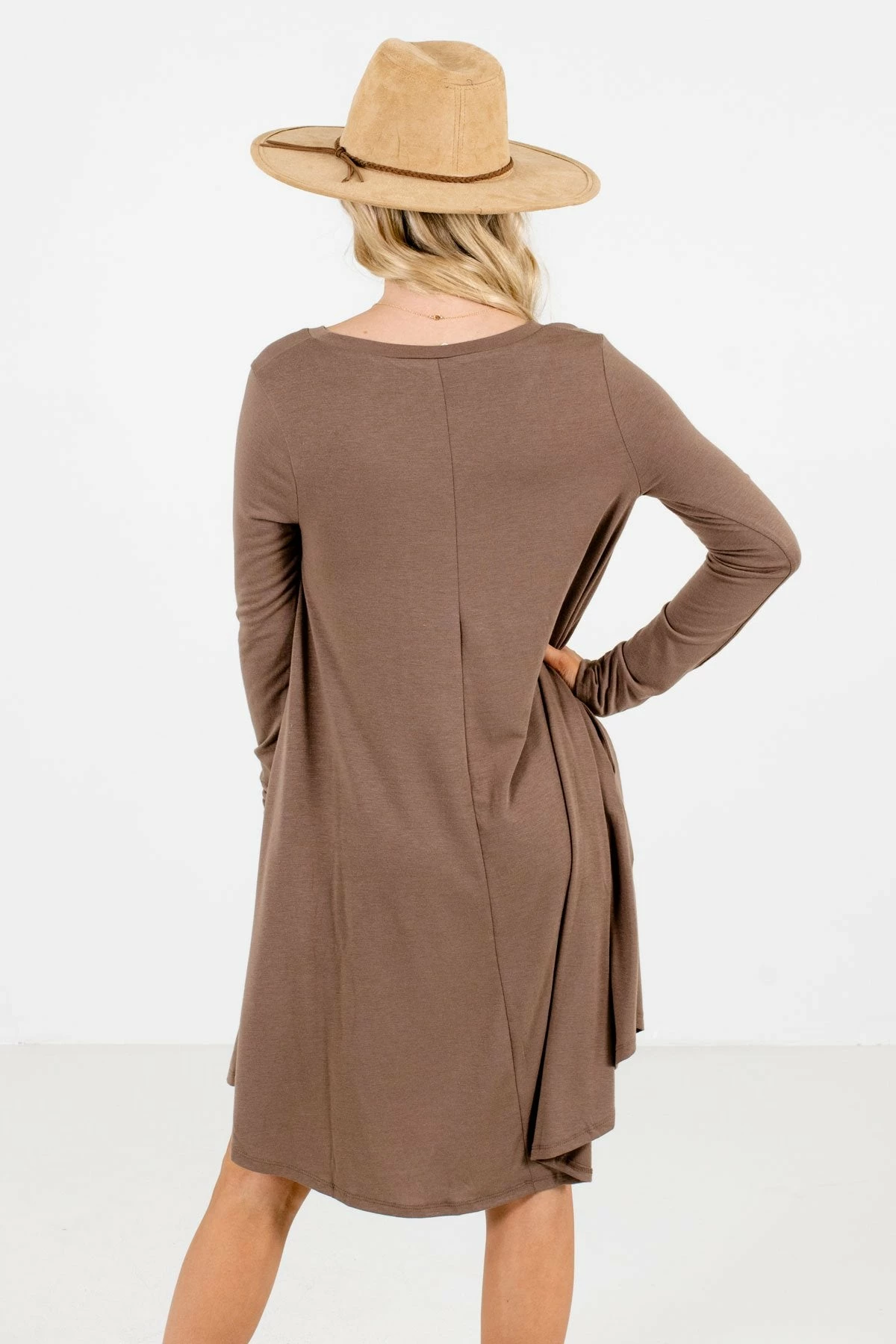 Our Chase Your Dreams Brown Mini Dress is composed of 55% Polyester 40% Rayon 5% Spandex. Hand wash cold. Hang or lay flat to dry. Please do not bleach.