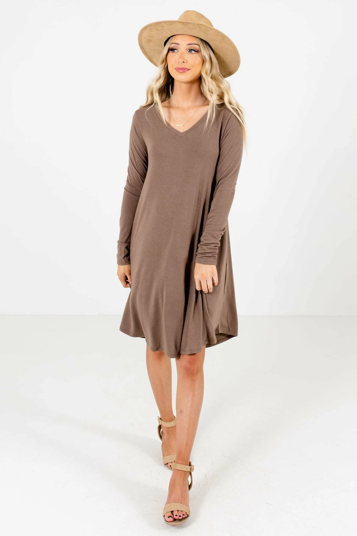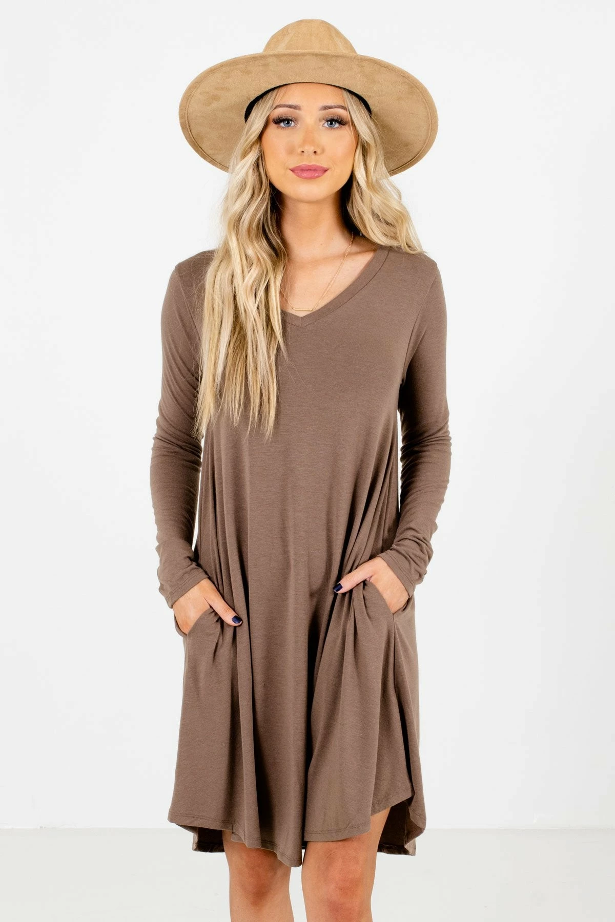 Our new Chase Your Dreams Brown Mini Dress is perfect for layering! This cute mini dress is a solid brown color that’s so easy to style and pair. It features a v-neckline, long sleeves, and pockets! We’re in love with the high-quality material that’s perfect for the upcoming season. Pair our Chase Your Dreams Brown Mini Dress with heeled black boots to recreate our model’s outfit! Try adding a cardigan on colder days.