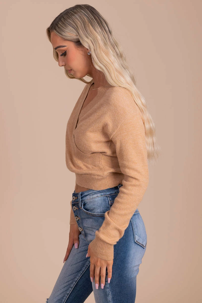 - Our City Nights Long Sleeve Wrap Sweater would be so cute for a date night out or special occasion!