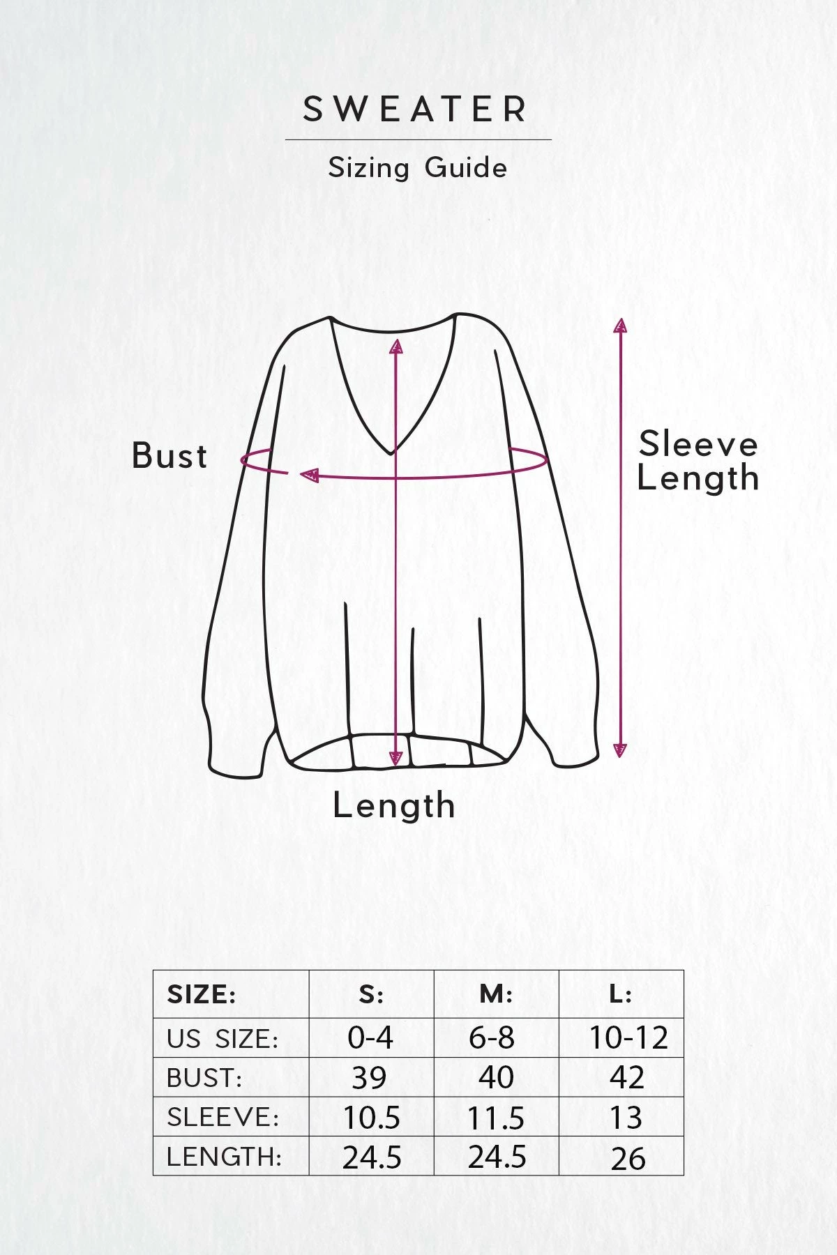 Measurements: US Size Bust Sleeve Length S 0-4 39″ 10.5″ 24.5″ M 6-8 40″ 11.5″ 24.5″ L 10-12 42″ 13″ 26″ Each of these sizes were hand-measured by one of our stylists; if you have any questions regarding sizing, please contact us via email at [email protected], or by phone at (800) 803-0878