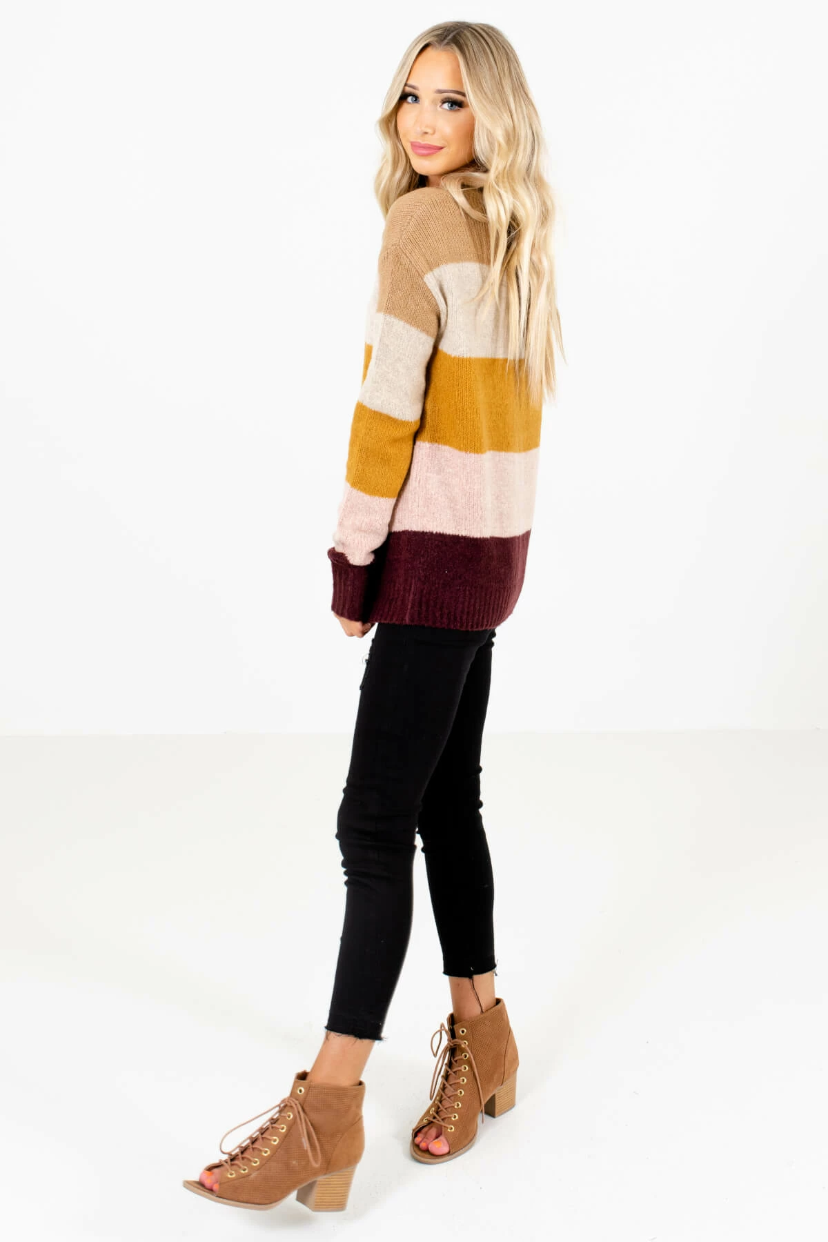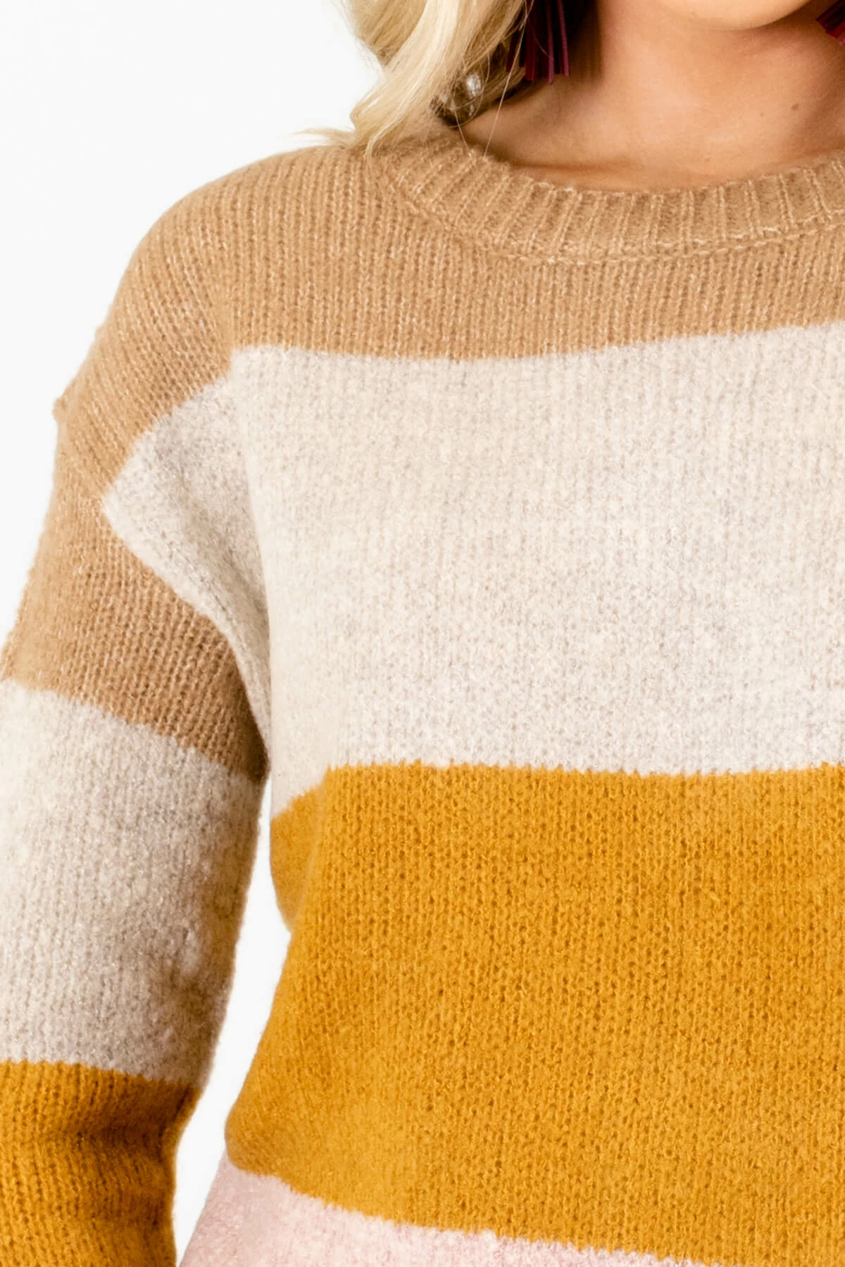Our new Dream Come True Mustard Multi Striped Sweater is a fan favorite here at Bella Ella and it’s easy to see why! This adorable sweater features a mustard yellow, tan, beige, pink, and purple striped pattern. The knit material and relaxed fit will keep you comfortable and warm all season long! Pair our Dream Come True Mustard Multi Striped Sweater with skinny jeans and booties for a cute everyday outfit.