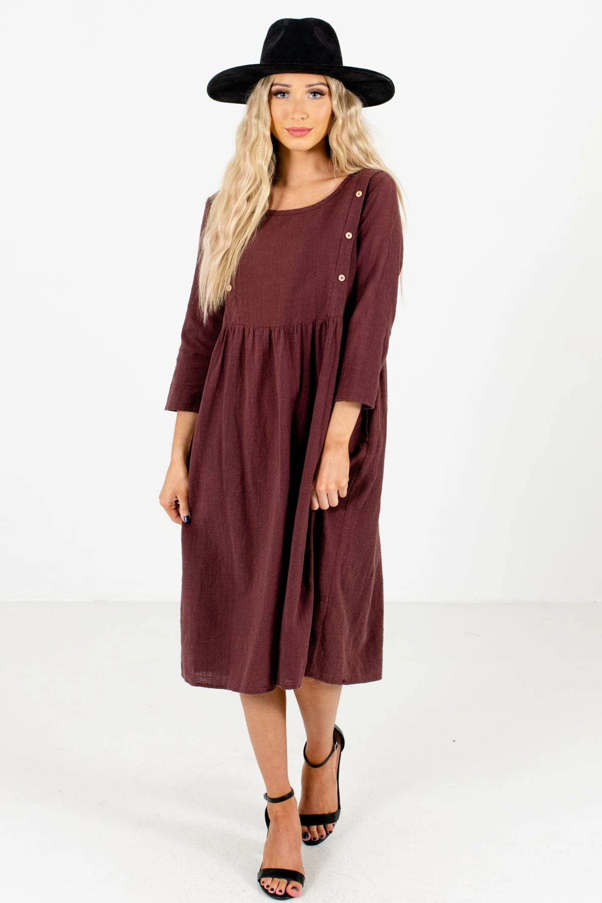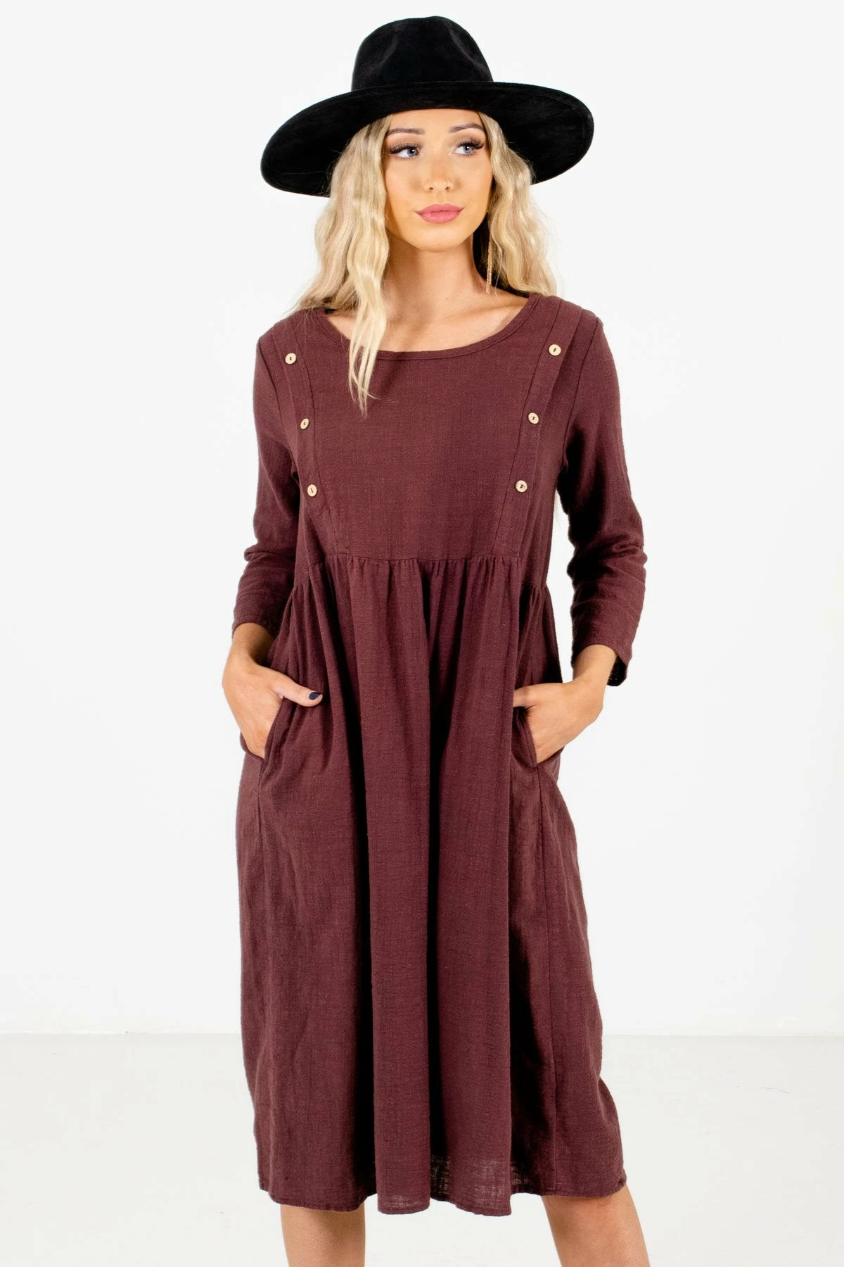 Our new Embrace Your Beauty Purple Knee-Length Dress is so comfortable and cute! This beautiful dress is a solid purple color. We’re in love with the decorative wooden buttons, 3/4 length sleeves, and pockets! The high-quality material and knee-length make it easy to wear. Pair our Embrace Your Beauty Purple Knee-Length Dress with sleek heels to recreate our model’s adorable outfit!