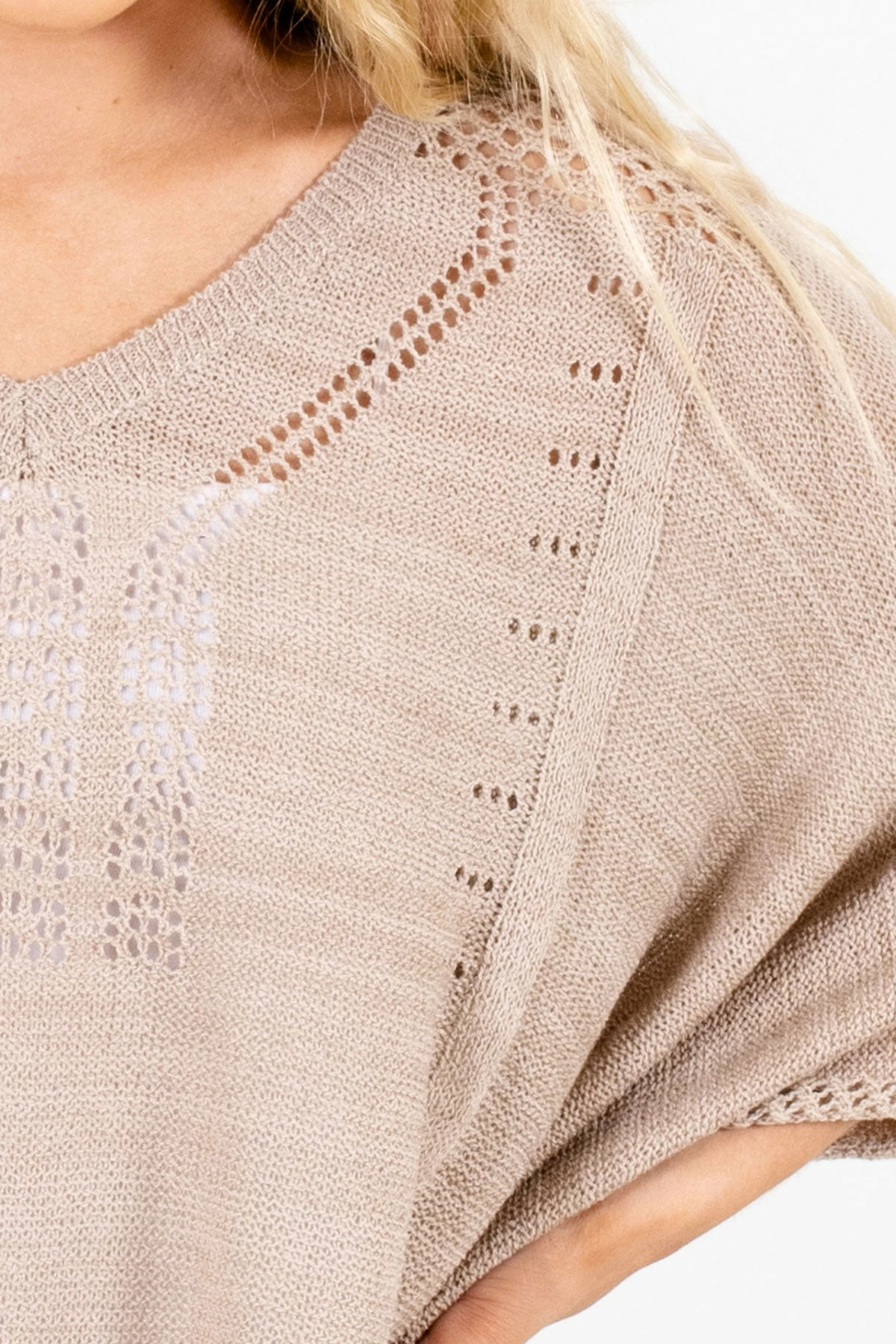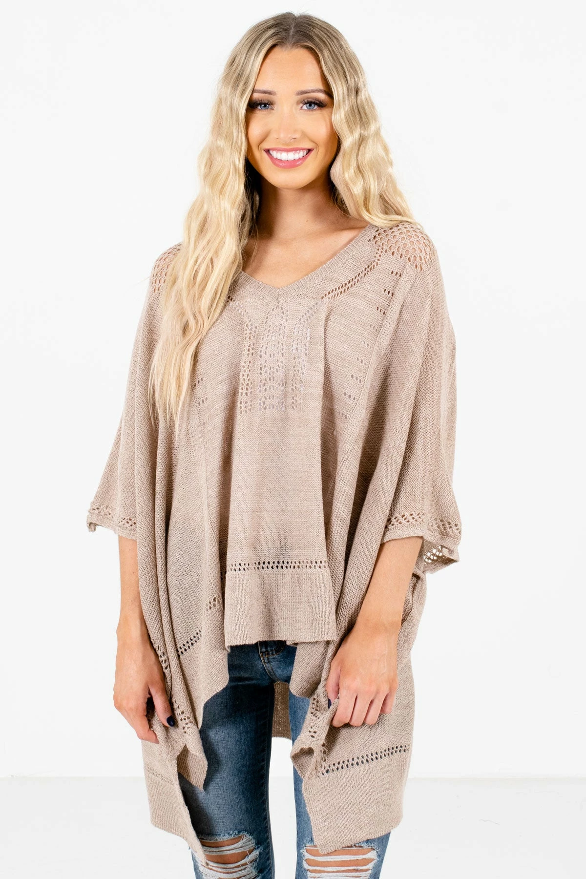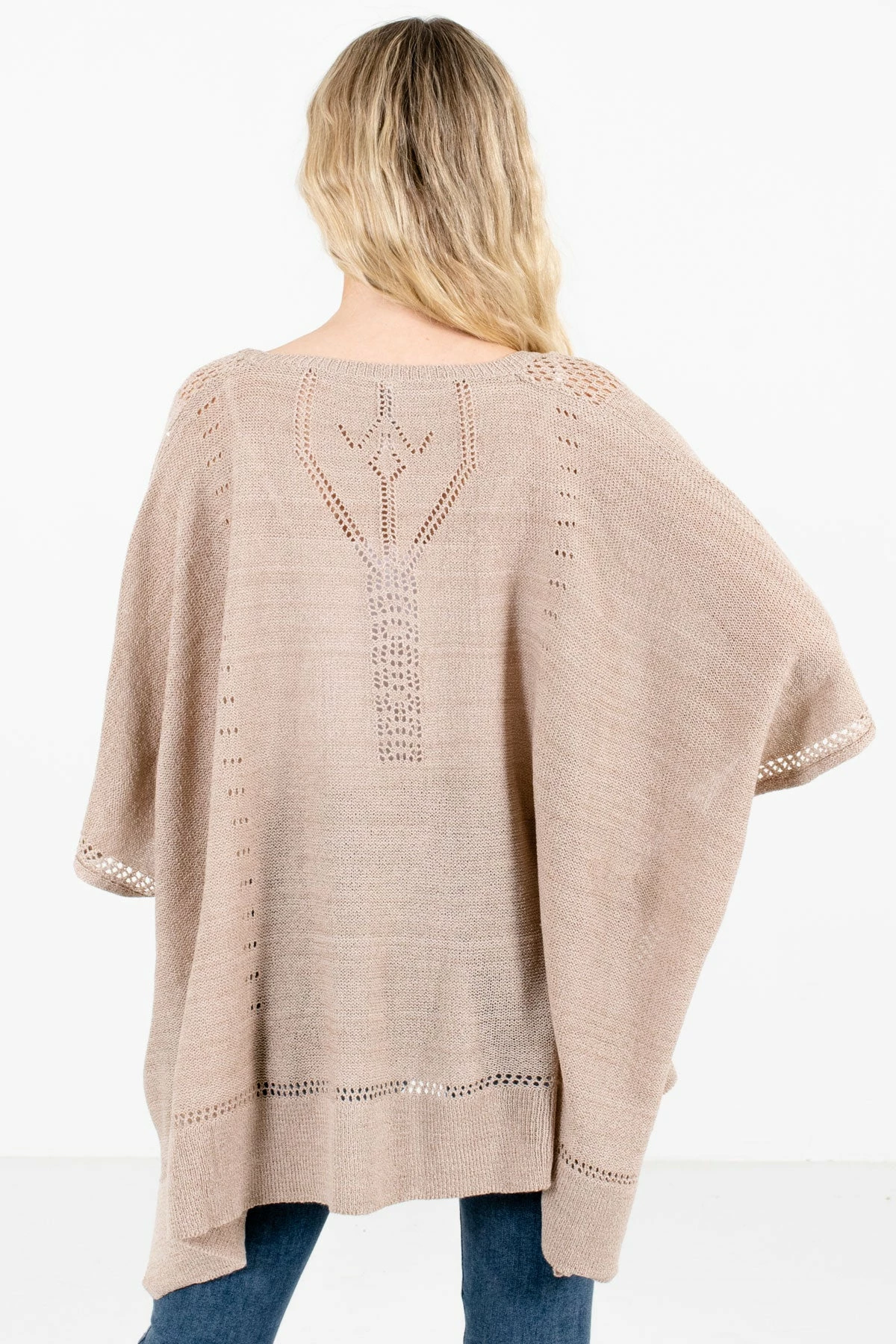 We’re in love with our new Joyful Heart Taupe Brown Sweater Poncho! This cute poncho is a solid taupe brown color. It features a v-neckline, unique cutout detailing, and an asymmetrical hem! The lightweight, knit material makes it perfect for layering. Wear our Joyful Heart Taupe Brown Sweater Poncho over a neutral-colored long sleeve top!