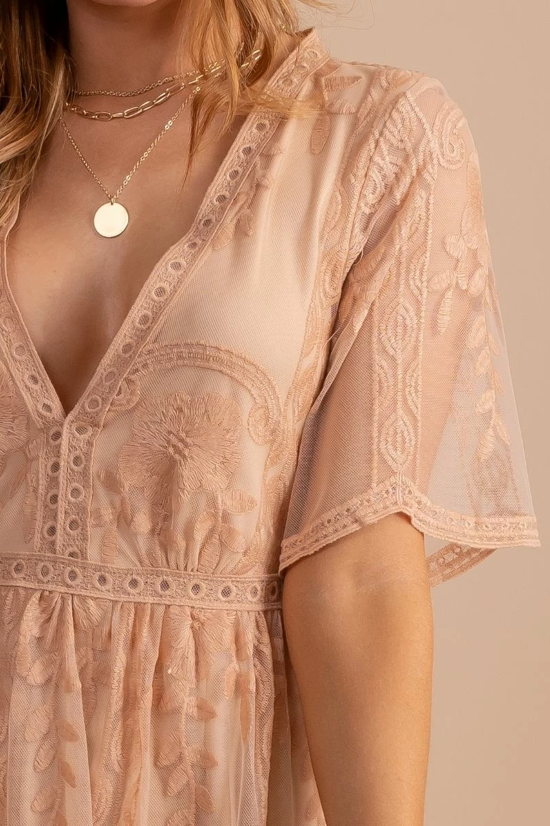 Spark a new romance in our Light My Fire Tan Lace Mini Dress! This gorgeous dress is a tan color and it has stunning details. It features a deep v-neckline, partial lining on the bust and skirt, a zipper back, and intricate accents on the collar and waistline. Our favorite part of this dress is the efflorescent crochet lace overlay which extends past the hem and sleeves, creating an ethereal, romantic look. The back of the bodice is semi-sheer, adding a flirtatious touch to this breathtaking piece. The Light My Fire Tan Lace Mini Dress would be perfect for your next party, wedding, or girl’s night out!