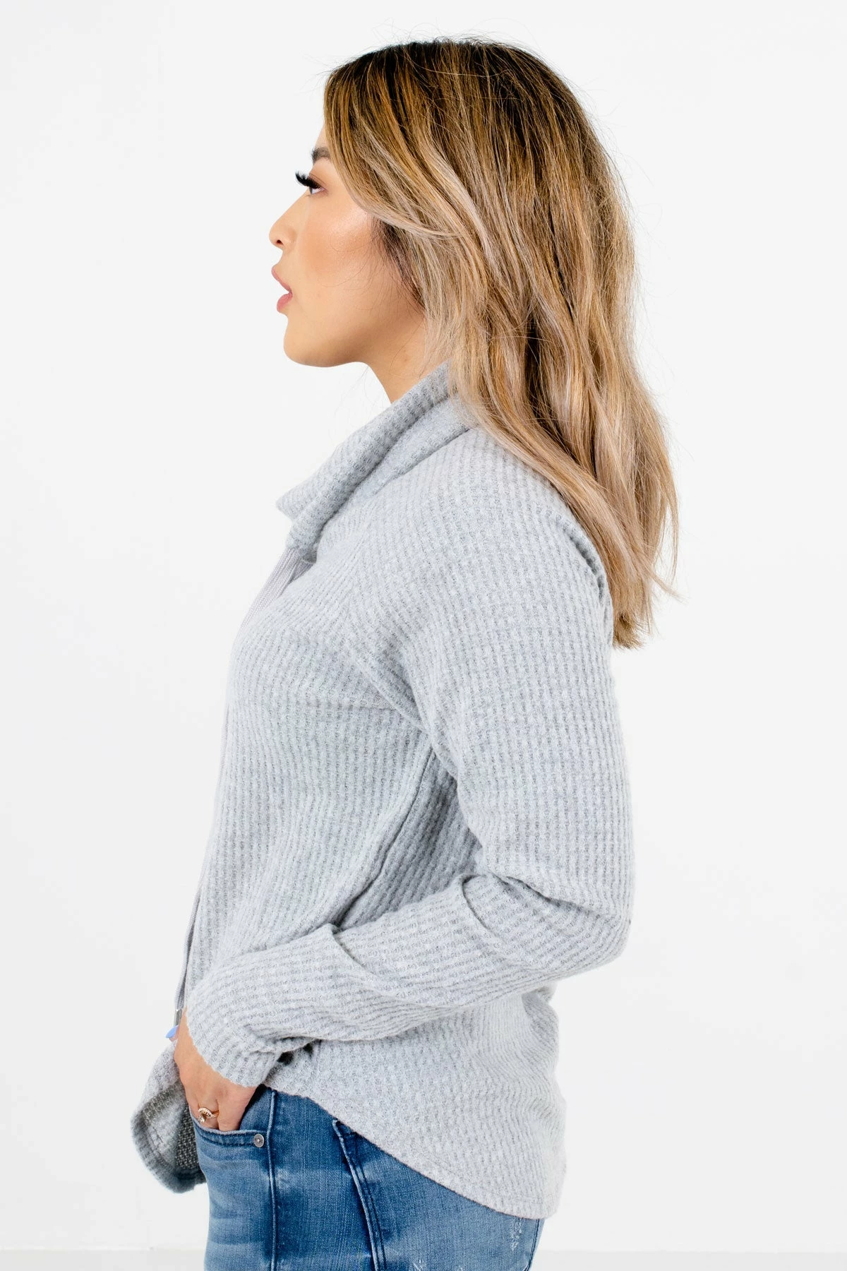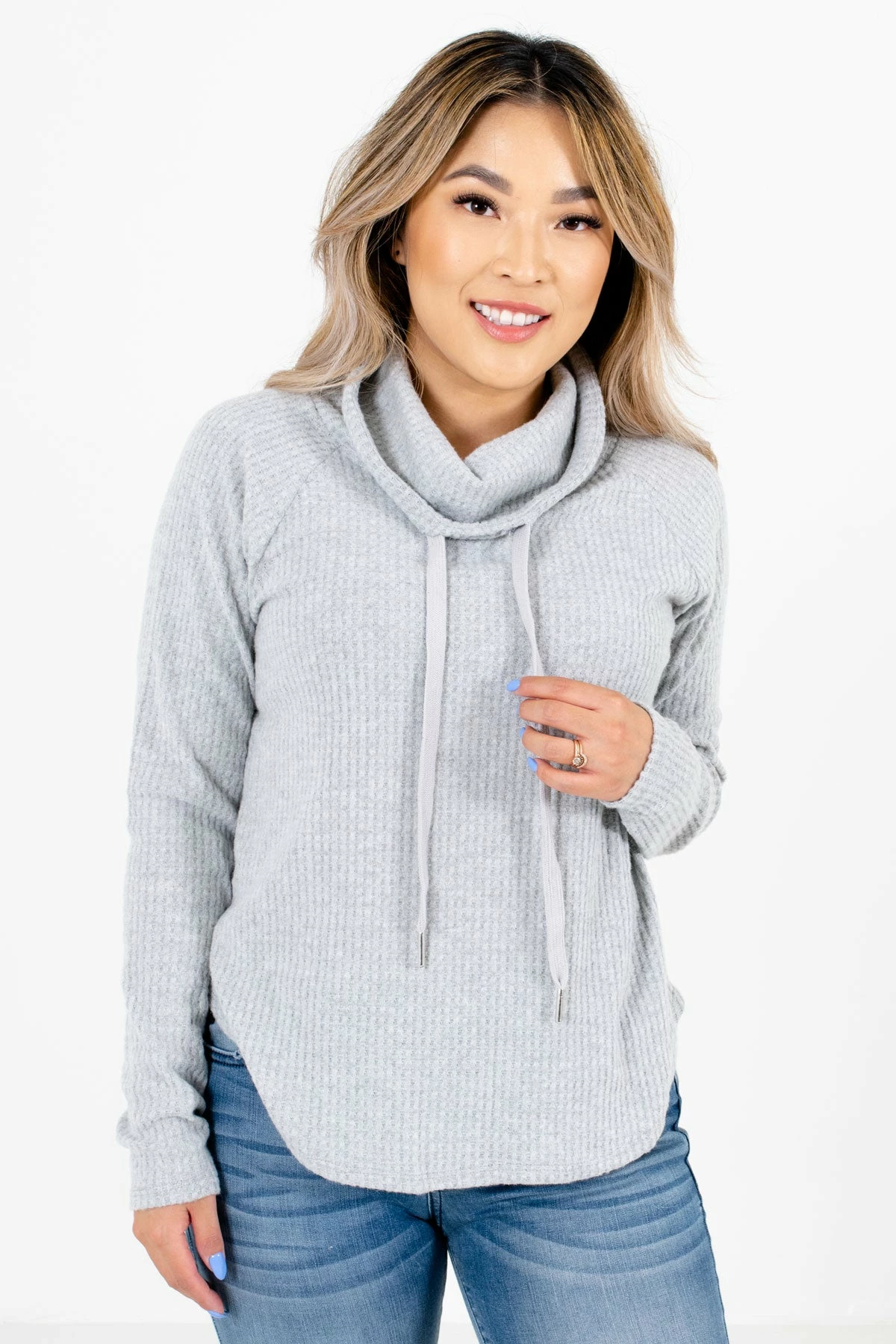 Our new Lost in a Daydream Gray Cowl Neck Sweater is perfect for everyday wear! This unique sweater is a solid light gray color. It features high-quality, waffle knit material that’ll keep you warm and cozy! We’re obsessed with the drawstring cowl neckline that sets this sweater apart and takes it to the next level. Pair our Lost in a Daydream Gray Cowl Neck Sweater with fleece-lined leggings and booties to create a casual everyday outfit!