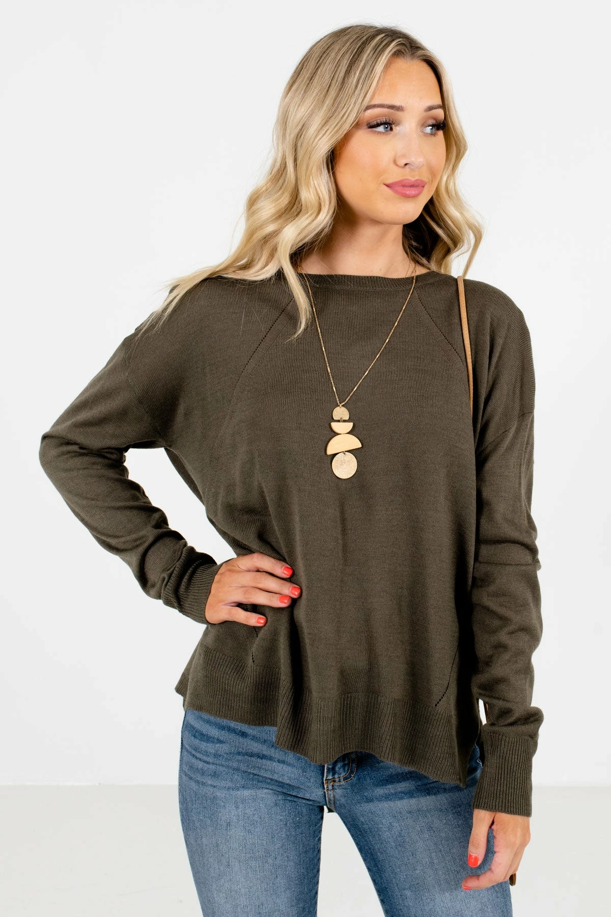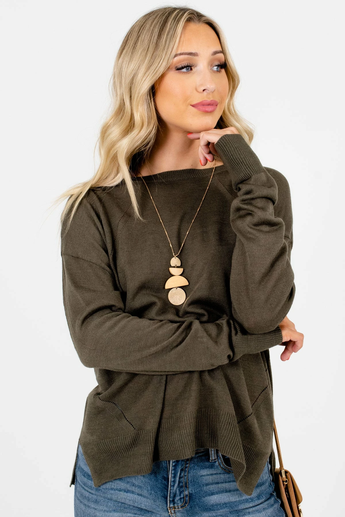 Our new Lost in Thought Olive Sweater is perfect for the upcoming season! This cute sweater is a solid olive green color. It features a split high-low hem, decorative buttons on up the back, and a round neckline! We’re in love with the lightweight, knit material that’s perfect for layering. Pair our Lost in Thought Olive Sweater with skinny jeans and thigh-high boots to create a beautiful everyday outfit!