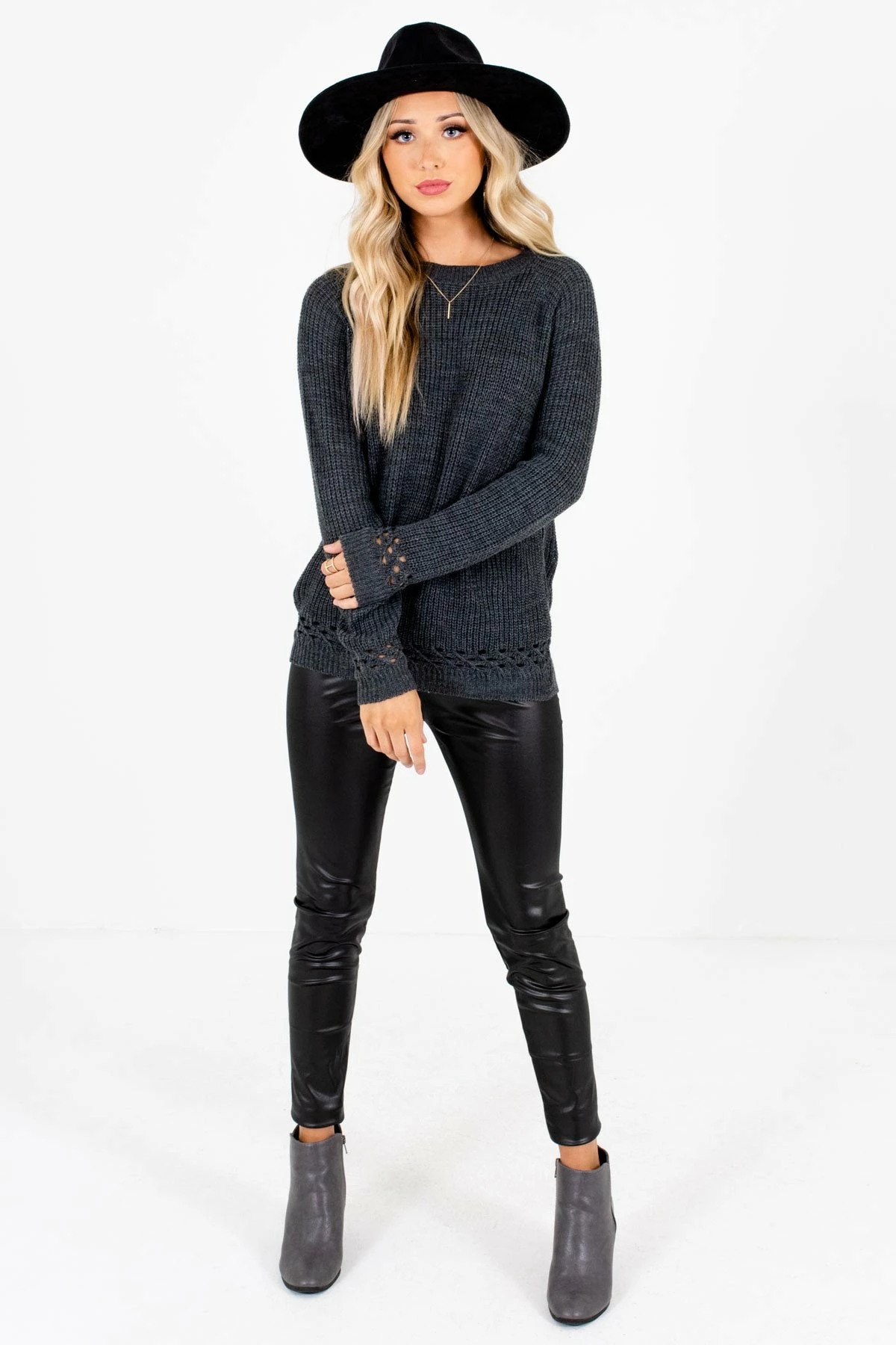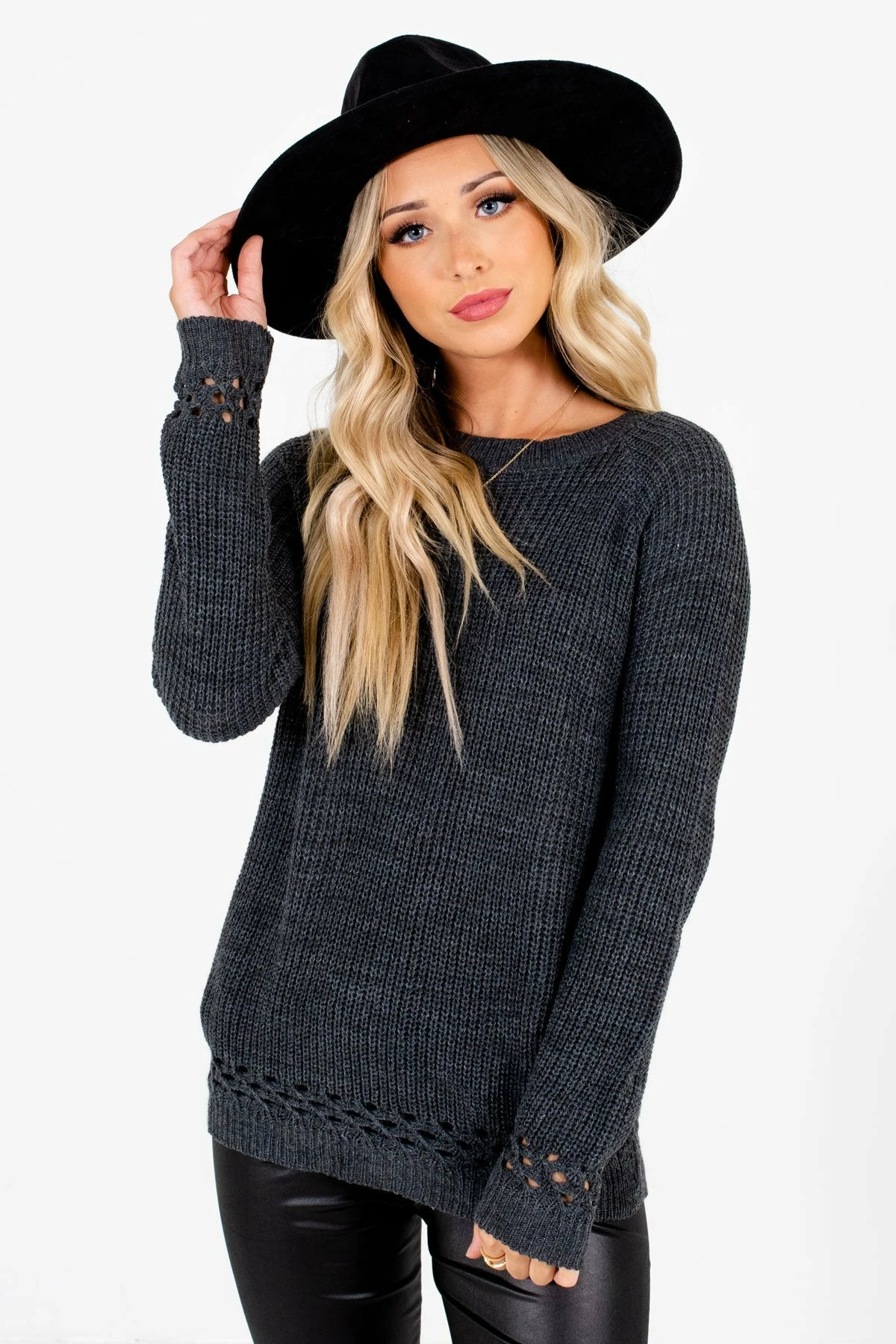 Our new Make a Change Charcoal Gray Sweater is a dream come true! This cute sweater is a charcoal gray color. We’re in love with the high-quality, knit material that’ll keep you warm and cozy! It features long sleeves and a round neckline. The cutout detailing on the hem and sleeves add a unique finishing touch! Pair our Make a Change Charcoal Gray Sweater with your favorite skinny jeans and boots.