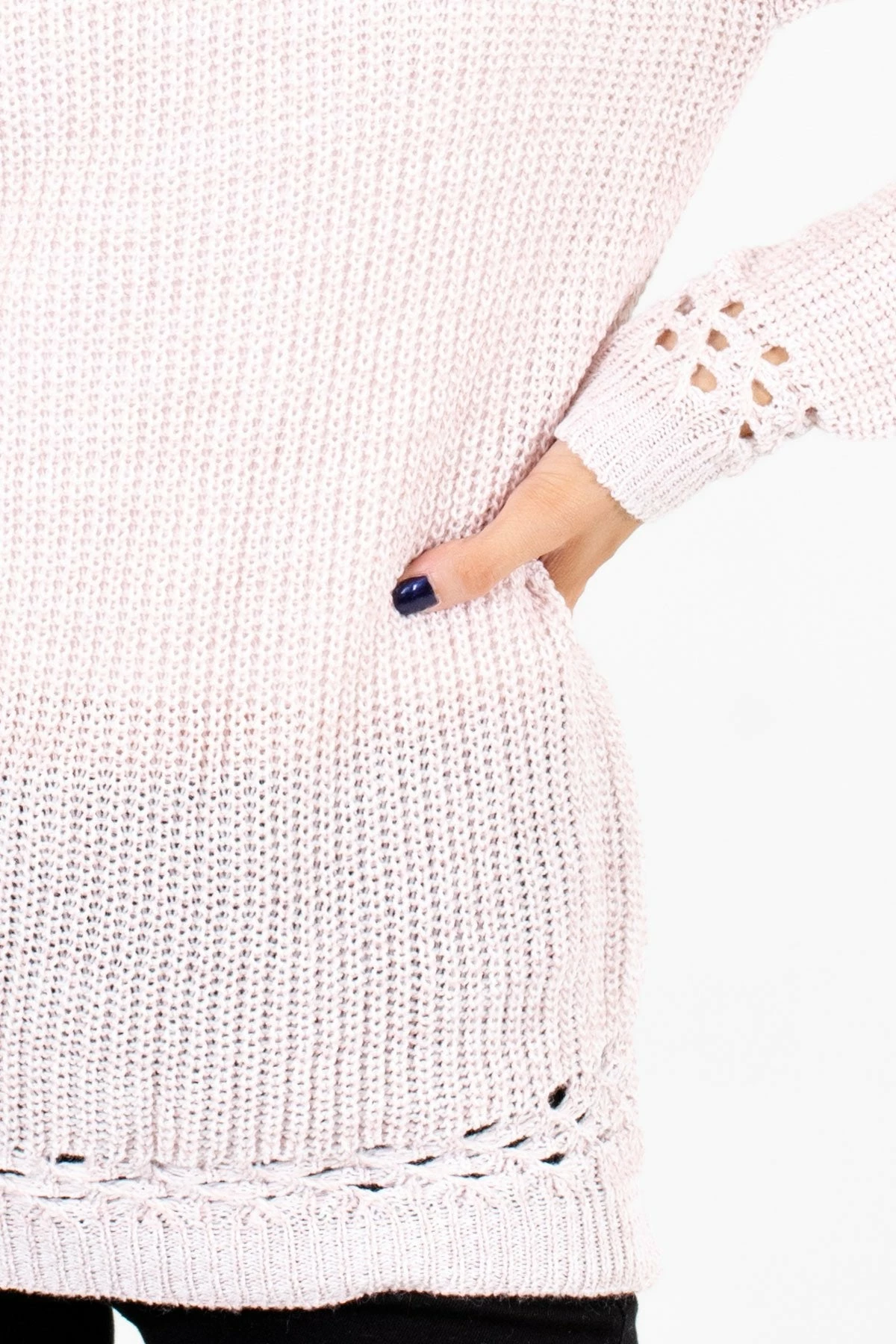 Our new Make a Change Pink Sweater is a dream come true! This cute sweater is a light pink color. We’re in love with the high-quality, knit material that’ll keep you warm and cozy! It features long sleeves and a round neckline. The cutout detailing on the hem and sleeves add a unique finishing touch! Pair our Make a Change Pink Sweater with your favorite skinny jeans and boots.