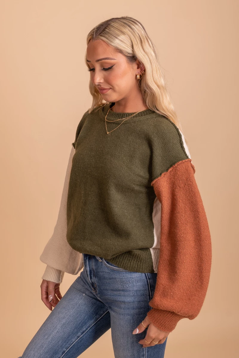 You’ll be so cozy in our new Be Anything Color Block Sweater! This adorable sweater is made of high-quality, soft material that creates a comfortable, oversized fit. We’re in love with the round neckline, color block pattern, and cozy fit! Pair our Be Anything Color Block Sweater with skinny jeans and your favorite booties to create a cute everyday outfit!