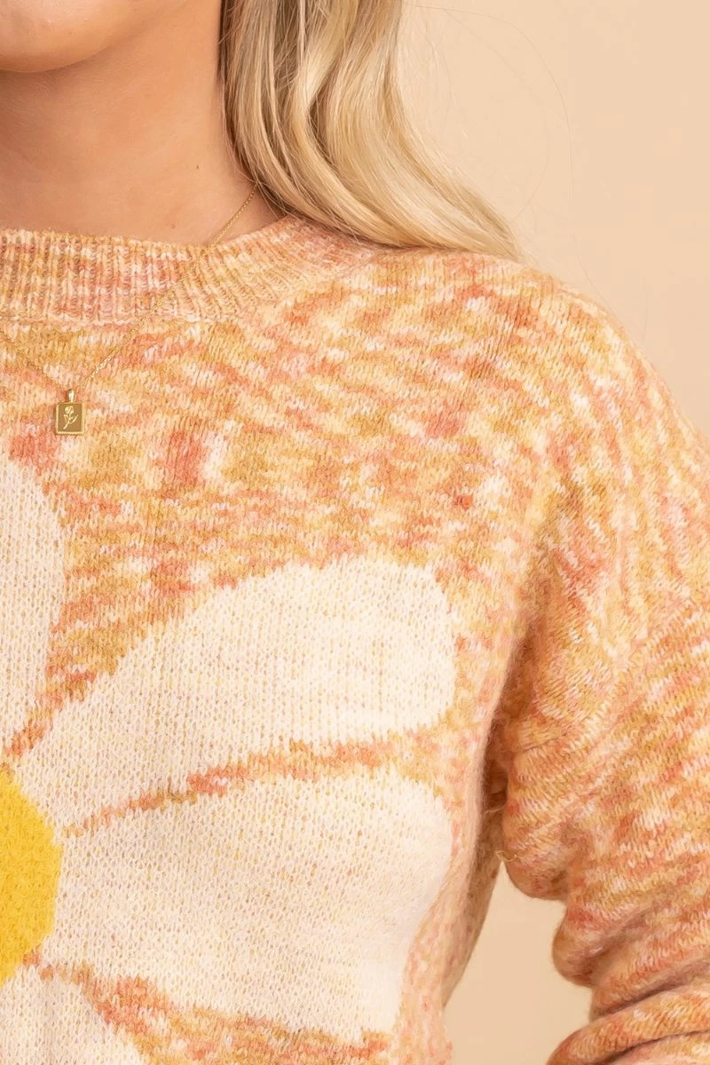 Pair your Daisy Day Print Sweater with a cute dress or skirt or with some denim jeans and ankle booties!