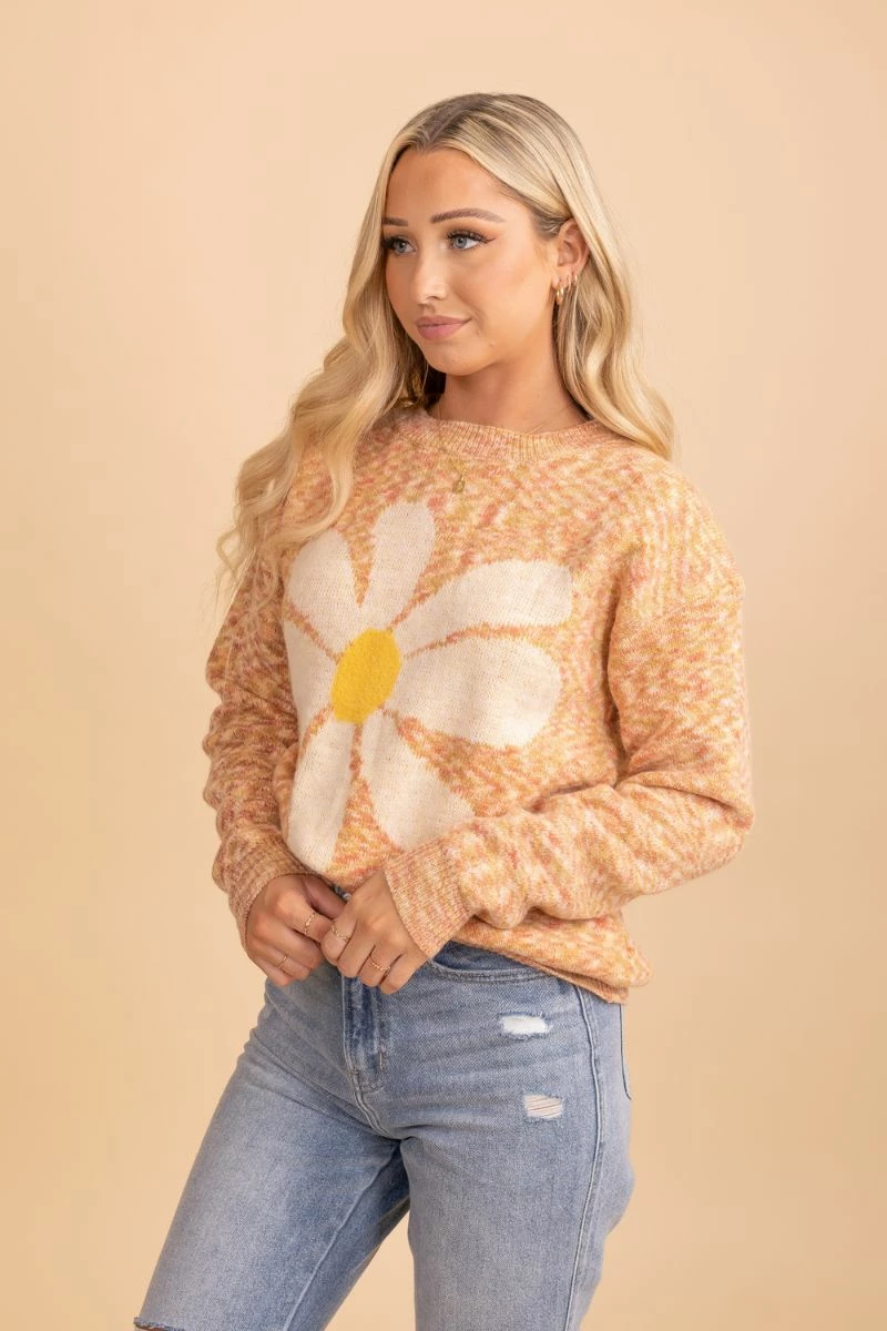 Our Daisy Day Print Sweater would be perfect for a date night out, cozy evening in, or any special occasion!