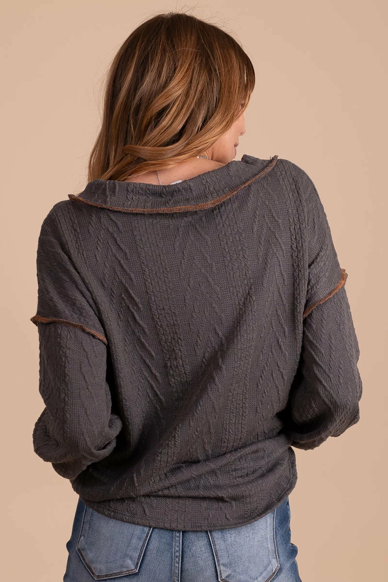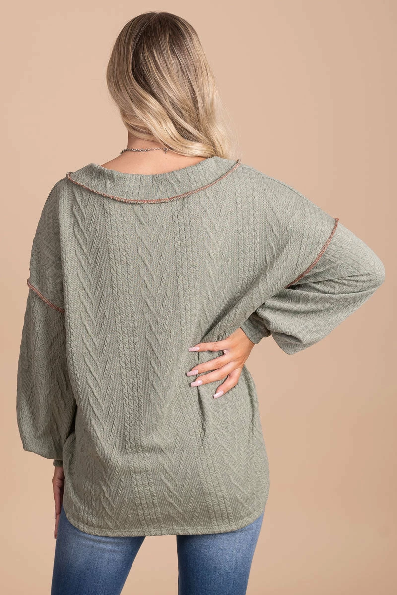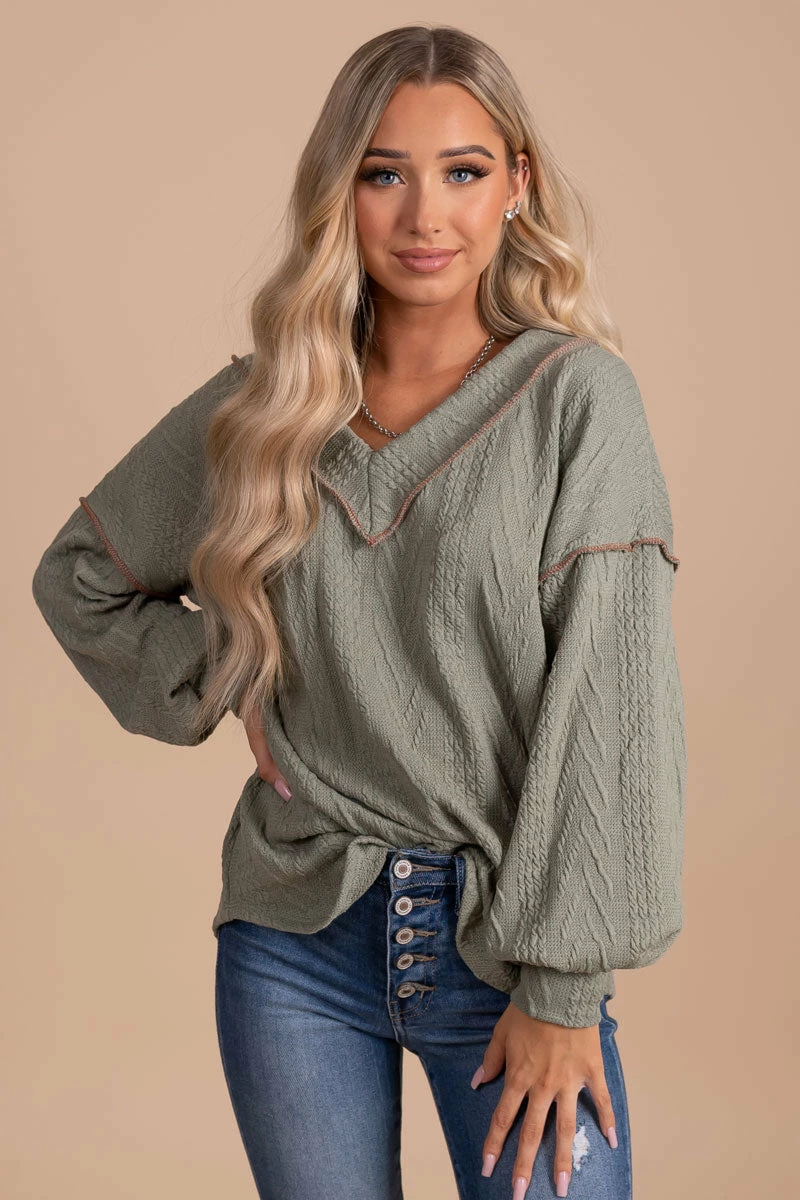 Our new Loving You V-Neck Knit Sweater is a must-have! This sweater features two cute color options, long bubble sleeves, and a thick v-neckline. The high-quality knit material and contrasting stitched details make this sweater so unique and cozy! Pair your Loving You V-Neck Knit Sweater with your favorite booties to create a gorgeous fall outfit!