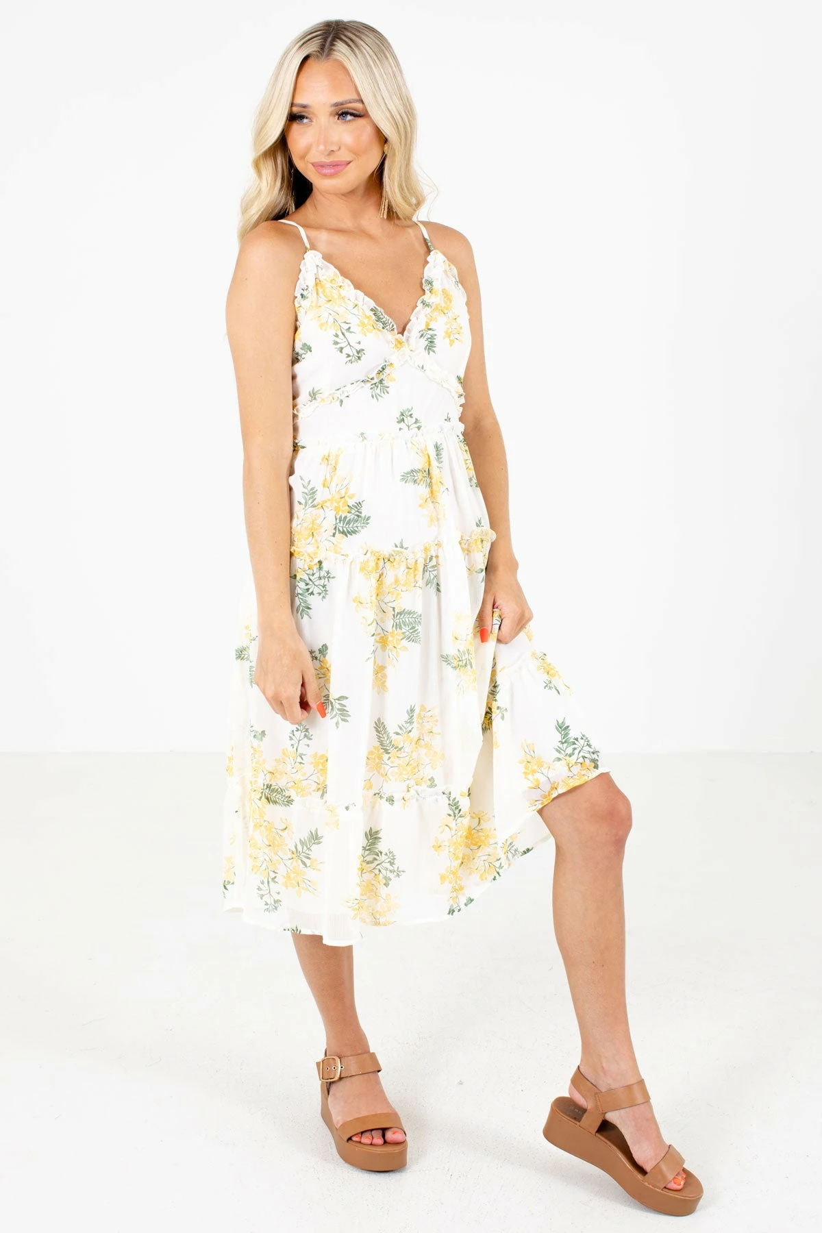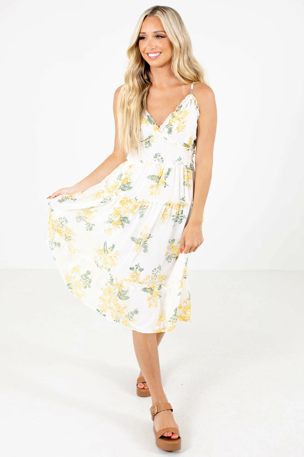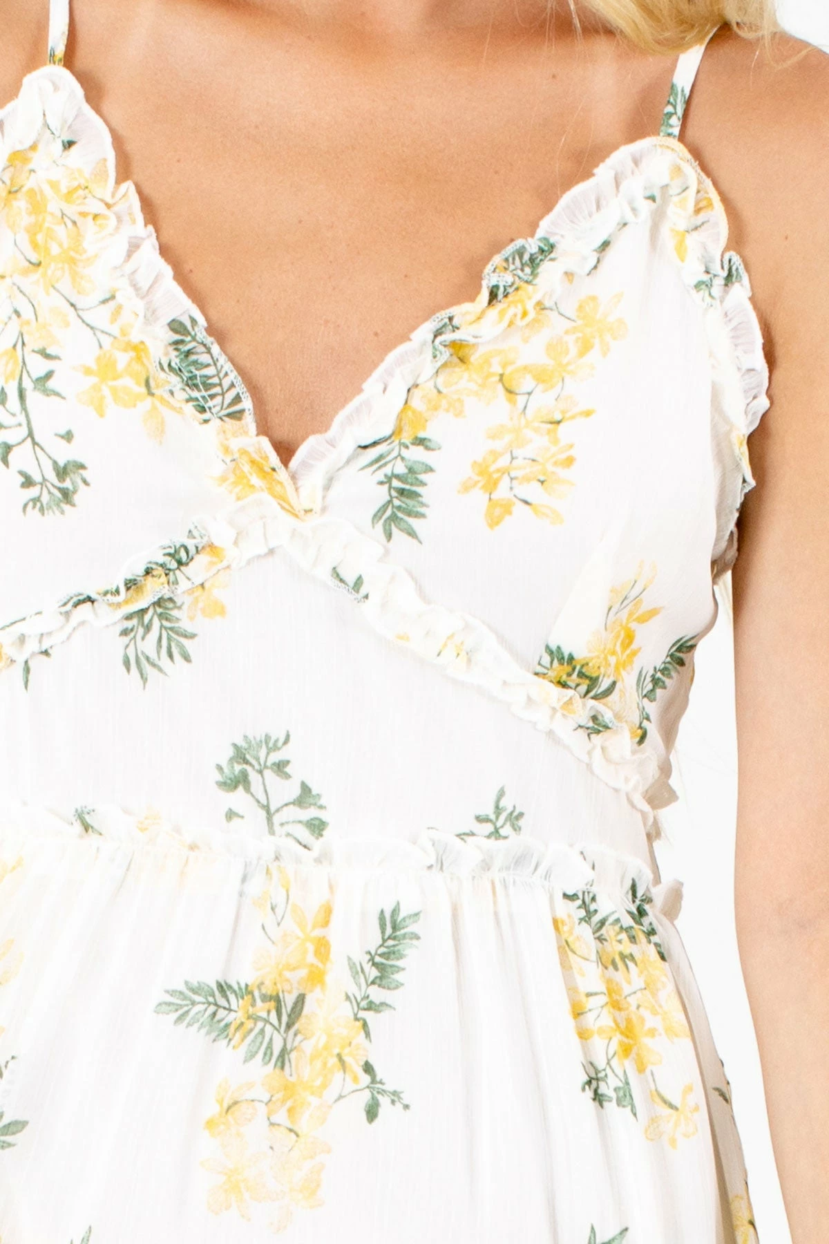 Our new Be Happier Cream Floral Midi Dress is so stunning! This midi dress is white and features a yellow and green floral pattern that’s perfect for the upcoming season. We’re in love with the adjustable spaghetti straps, ruffled accents, and v-neckline! The lightweight material, interior lining, and back zipper work together to make this dress comfortable and easy to wear. Pair our Be Happier Cream Floral Midi Dress with your favorite sandals to create a beautiful outfit!