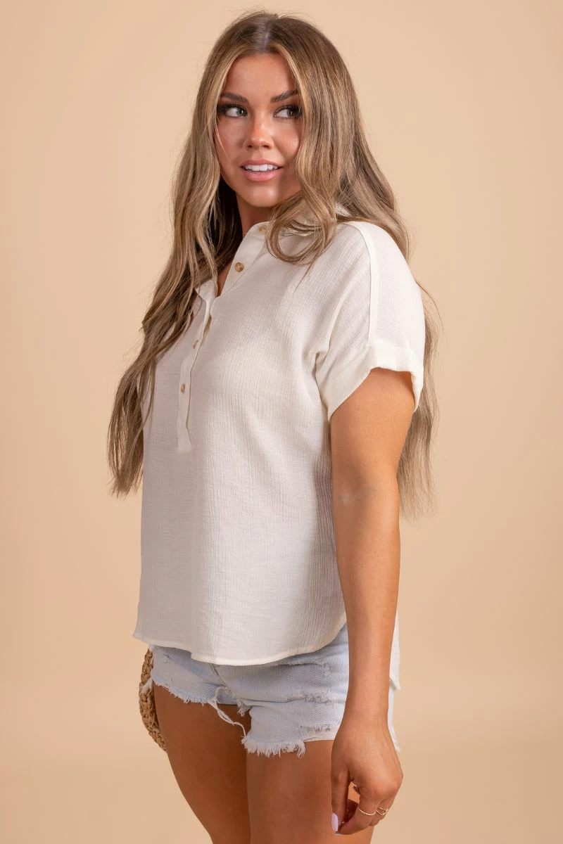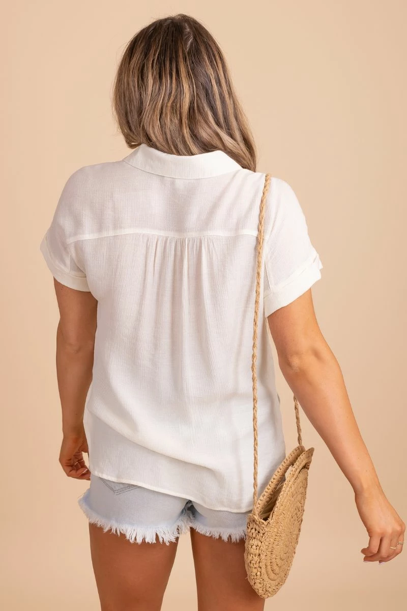 Our new Sophisticated Lady Blouse is a must-have! This top comes in a solid off white color. It features a classic v-neckline that’s complete with button accents. Our favorite part of this dress blouse is the high-quality, lightweight material! The flattering fit adds the perfect finishing touch. The Sophisticated Lady Blouse is perfect for wearing to the office!