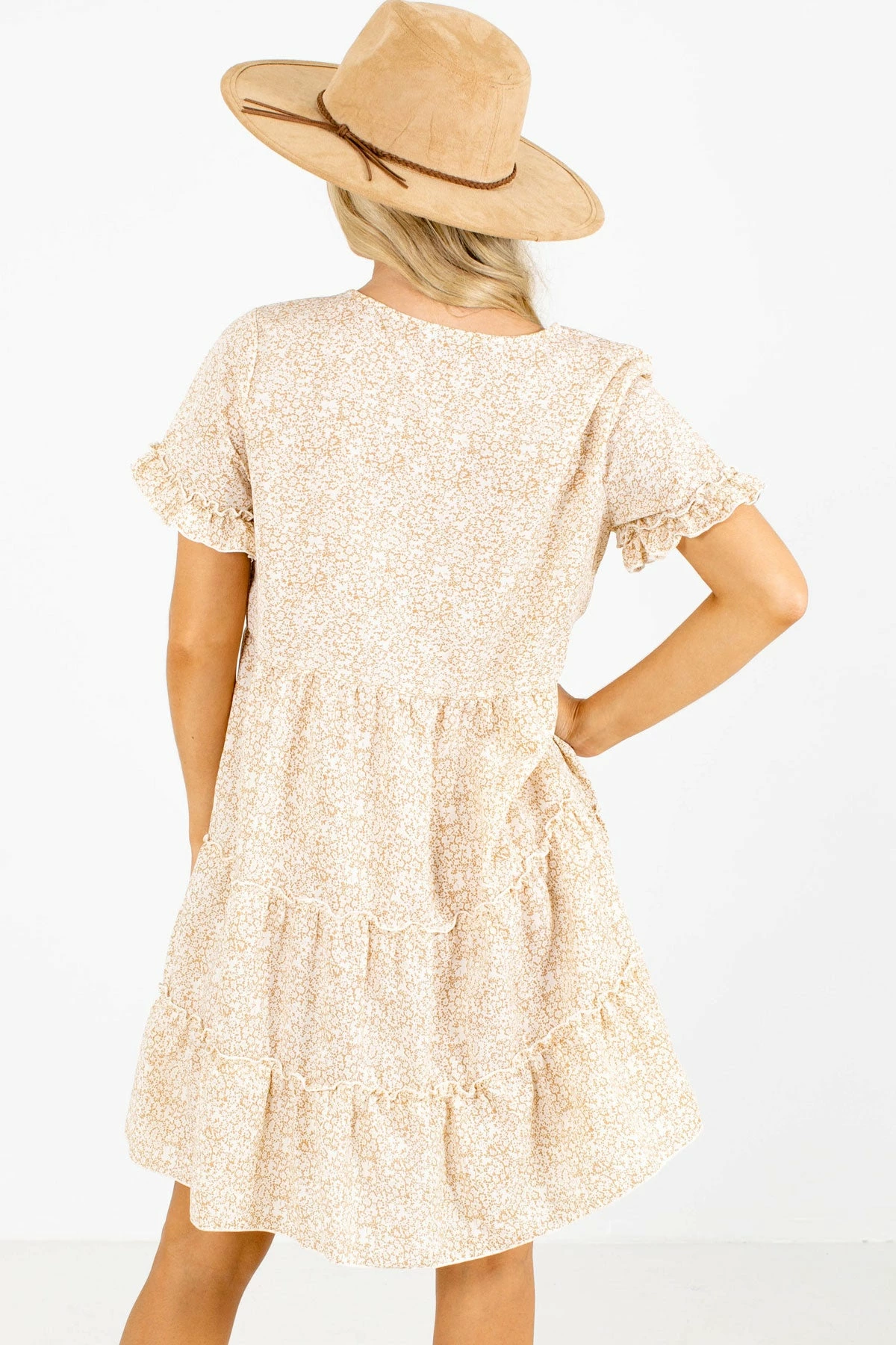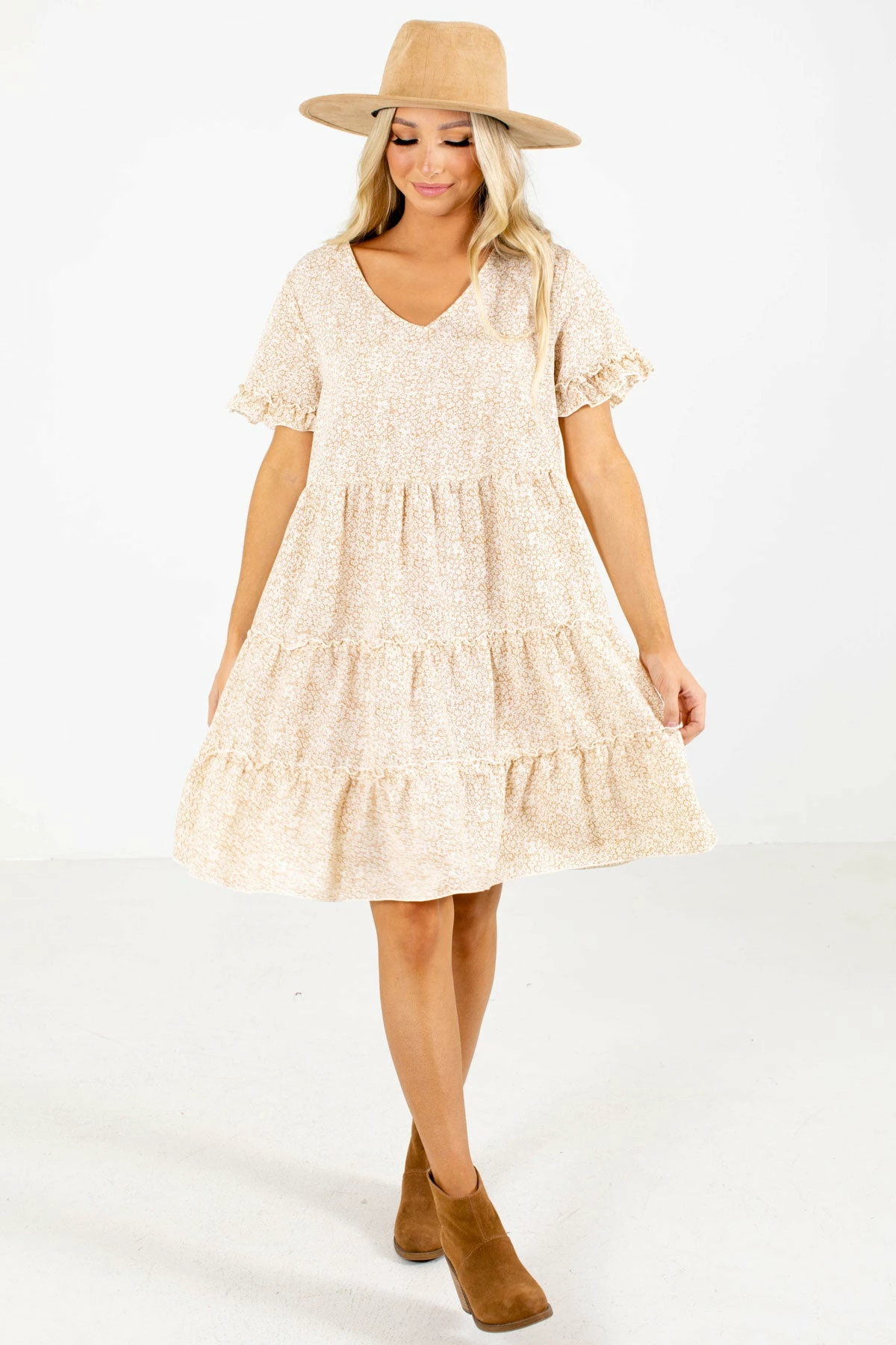 Our new Too Good Cream Floral Mini Dress is the perfect dress for the transitioning seasons! This adorable dress features a unique cream and taupe floral pattern. We’re in love with the v-neckline and ruffled detailing! The high-quality, lightweight material creates a comfortable and flattering silhouette. Pair our Too Good Cream Floral Mini Dress with simple brown booties!