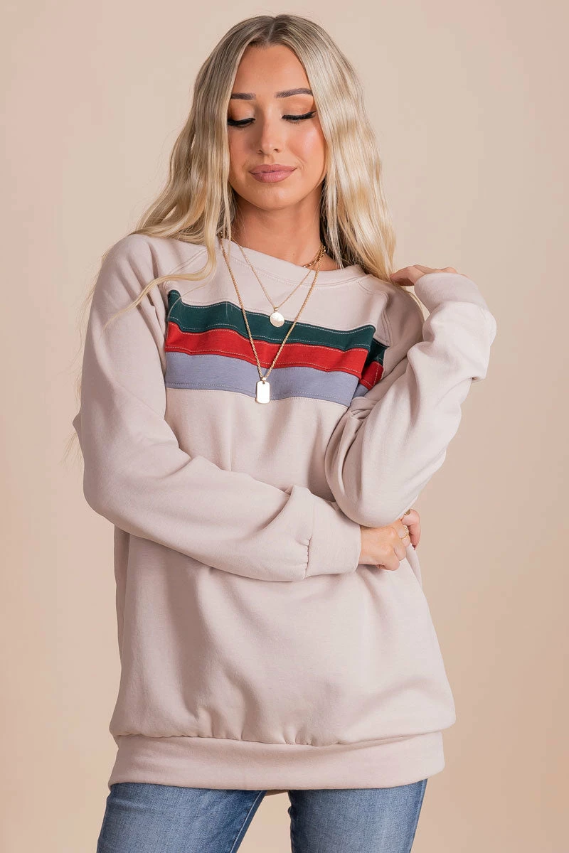 Our new By My Side Taupe Pullover is the perfect combination of comfy and cute! It features a round neckline, relaxed fit and long sleeves. Pair our By My Side Taupe Pullover with skinny jeans and high booties for a date night or girls night out.