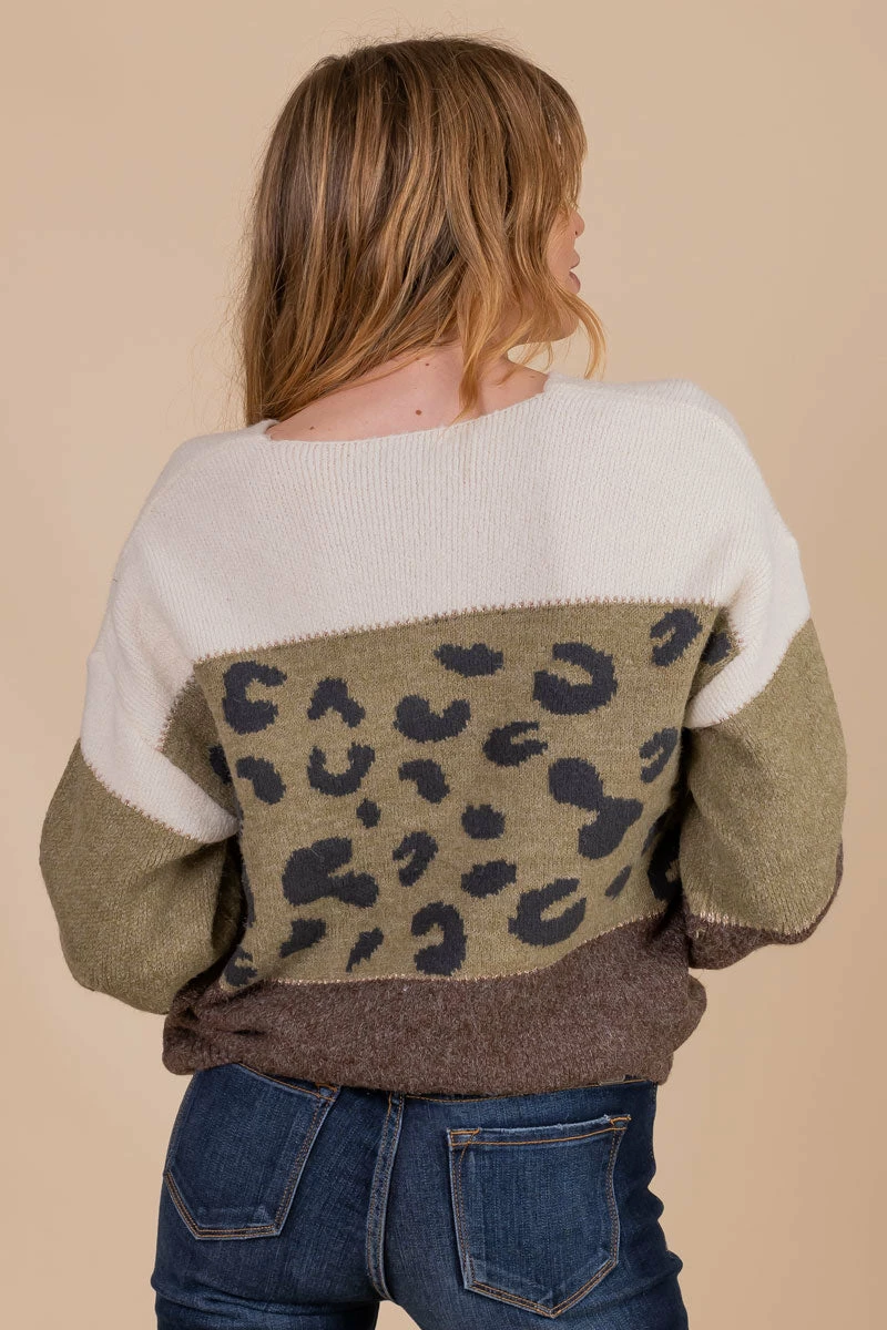 Our Keep Me Close Animal Print Sweater would be so cute for a date night out, cozy evening in, or just an easy warm outfit to throw on in a rush!