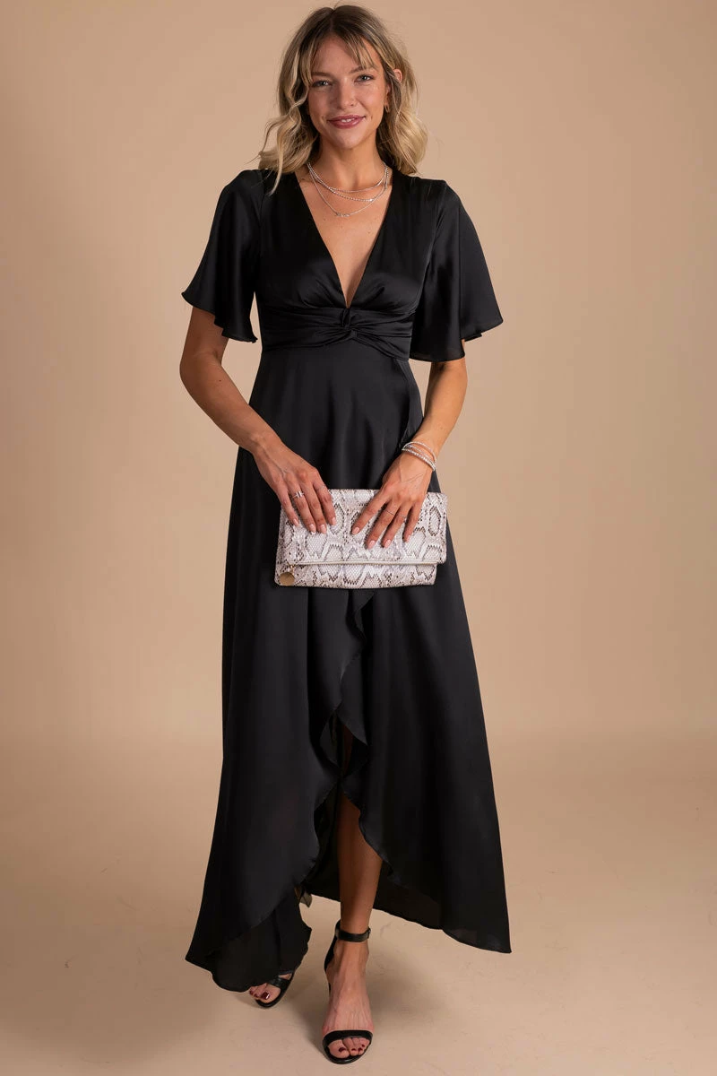 Our Look For Stars V-Neck Maxi Dress is perfect for any special occasion you have coming up! You’ll fall in love with the flutter sleeves, twist front, and deep v-neckline. It comes in two colors: black and hunter green. The lightweight, high-quality material creates a comfortable and flattering silhouette.
