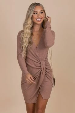 Our new Keep Moving Brushed Bodycon Mini Dress is a must have! This bodycon dress features long sleeves, a v-neckline, and a twist detail on the front! The cute camel pink color and soft, sweater material is the perfect transitioning piece for fall!