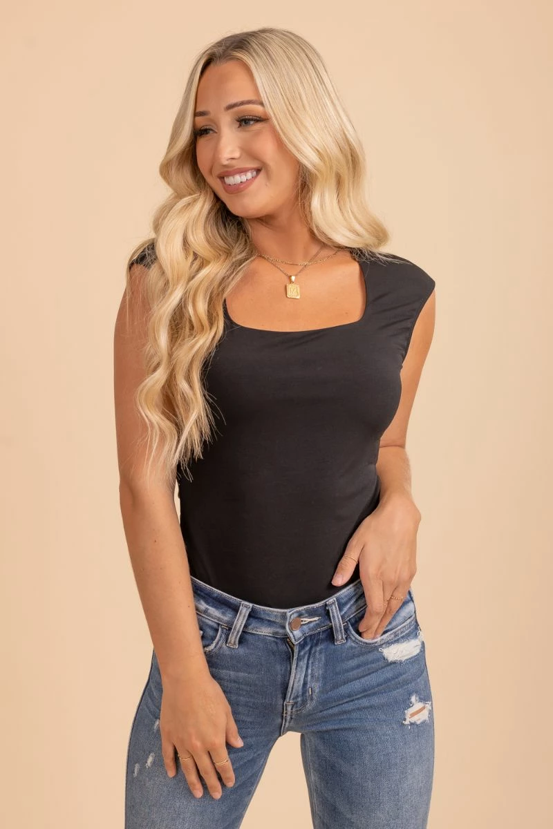 Gilli Do It For You Black Square Neck Bodysuit