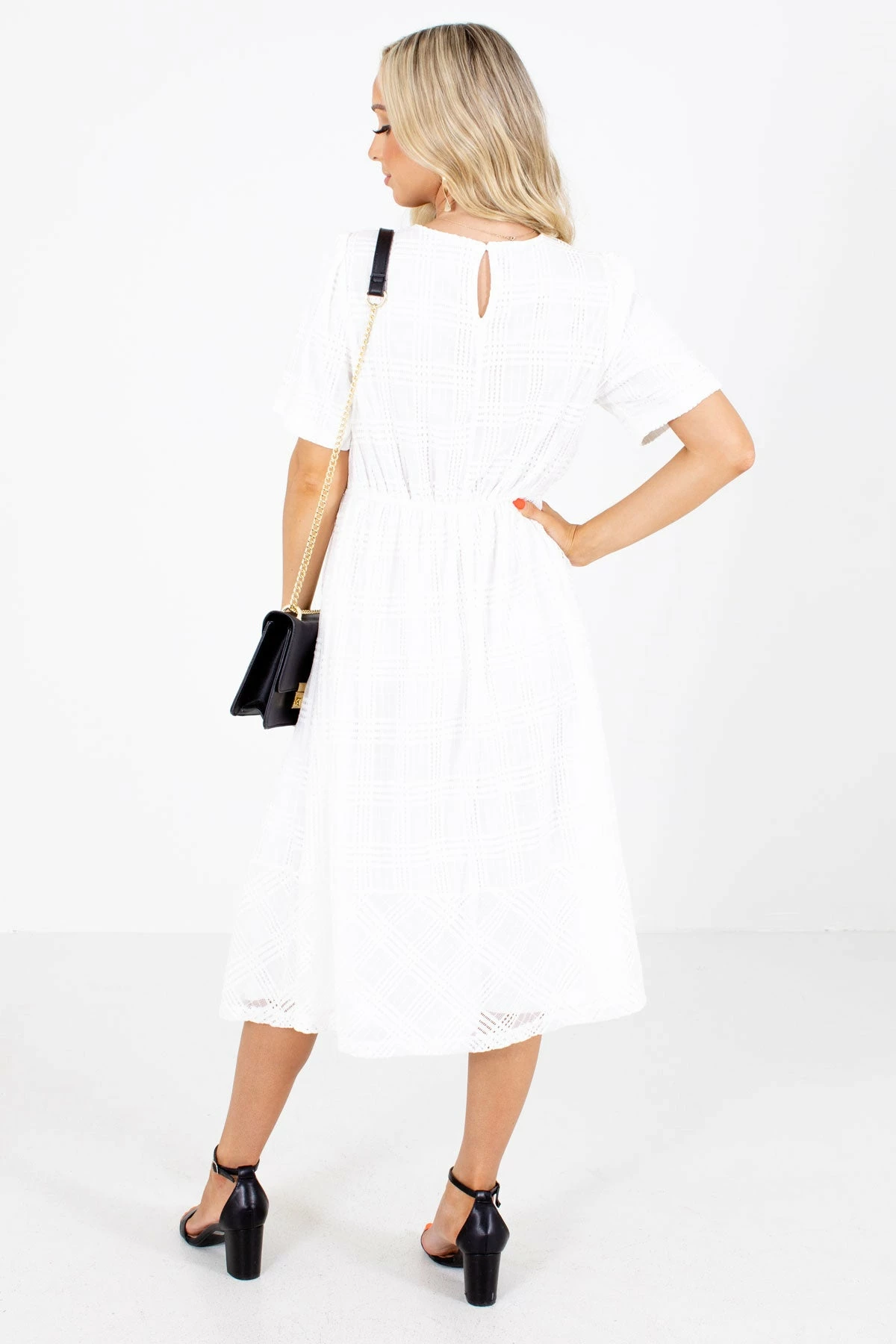 You’ll look and feel beautiful on our new In My Dreams White Midi Dress! This midi length dress is a solid white color. It features a round neckline, keyhole back, and back elastic waistband. We’re in love with the high-quality lace material that adds a unique touch! The full lining adds the perfect finishing touch. Pair our In My Dreams White Midi Dress with sleek heels and a matching purse to recreate our model’s gorgeous outfit!