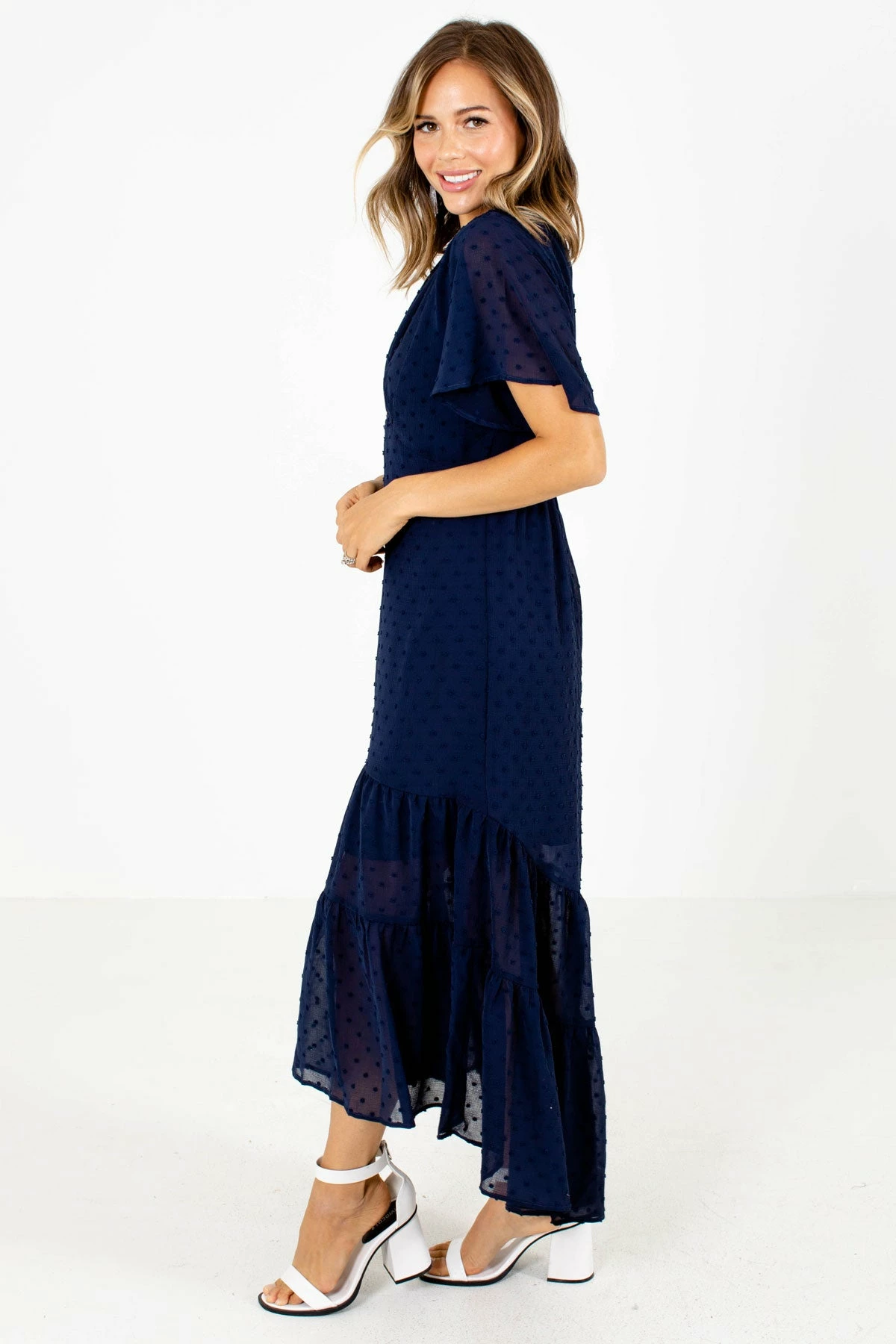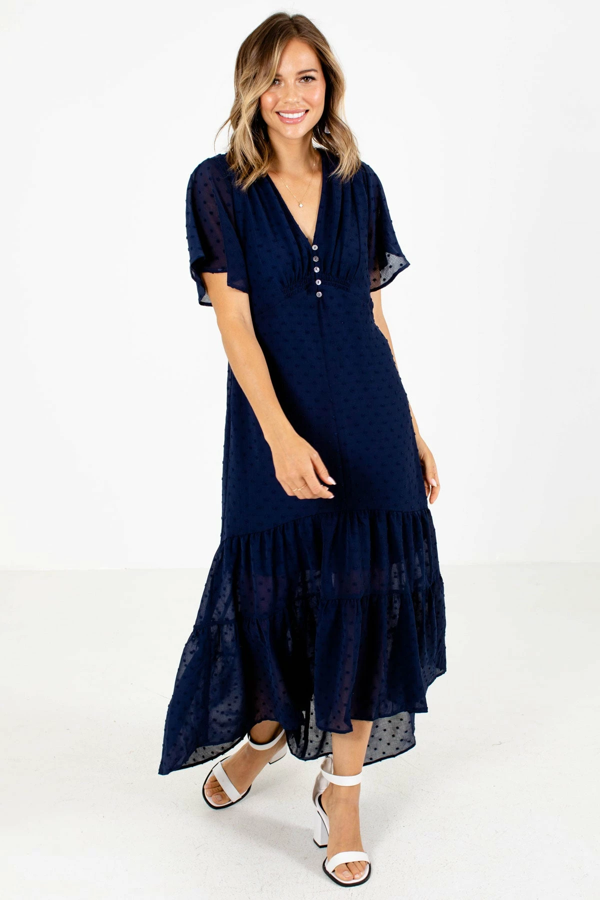 You’ll look and feel beautiful in our new Countless Compliments Navy Maxi Dress! This adorable dress is a solid navy blue color. It features a v-neckline, button-up bodice, and high-low hem! We’re in love with the swiss dot material and interior lining. Pair our Countless Compliments Navy Maxi Dress with white heels to recreate our model’s gorgeous outfit!