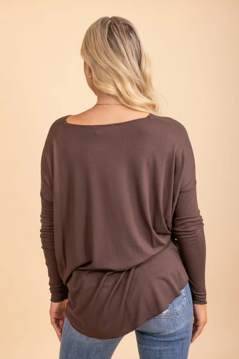 Our new Small Steps Forward Oversized Top will quickly become your new favorite! This sweater features the perfect off white and dark brown color. The light weight, high quality material makes it so comfortable to wear! We are in love with the low wrapped v-neck that is so flattering!