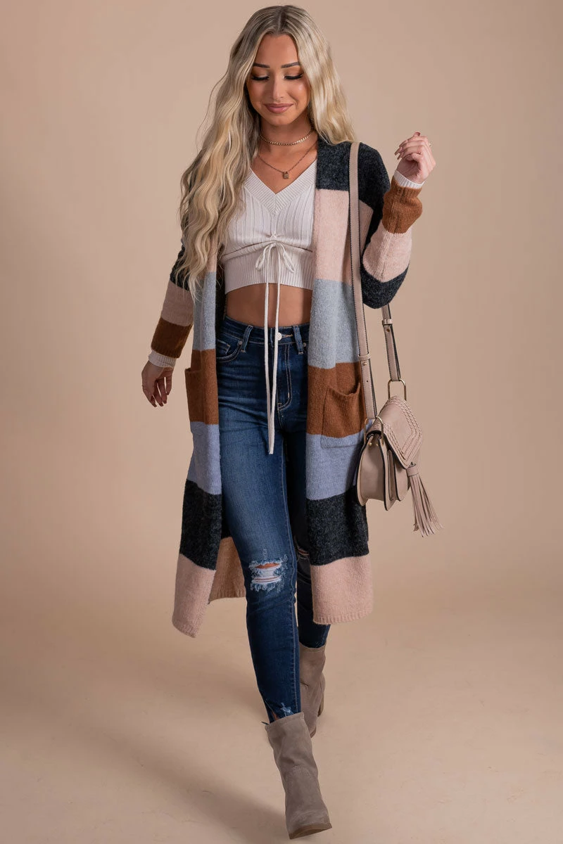 Our Special Moments Striped Cardigan will quickly become your new favorite piece! We’re obsessed with the long knee-length, long sleeves, and striped pattern! The lightweight, high-quality material creates a comfortable and flattering silhouette. The gorgeous fall colors add the perfect finishing touch!Pair our Special Moments Striped Cardigan with your favorite tee and jeans to create a cute outfit!