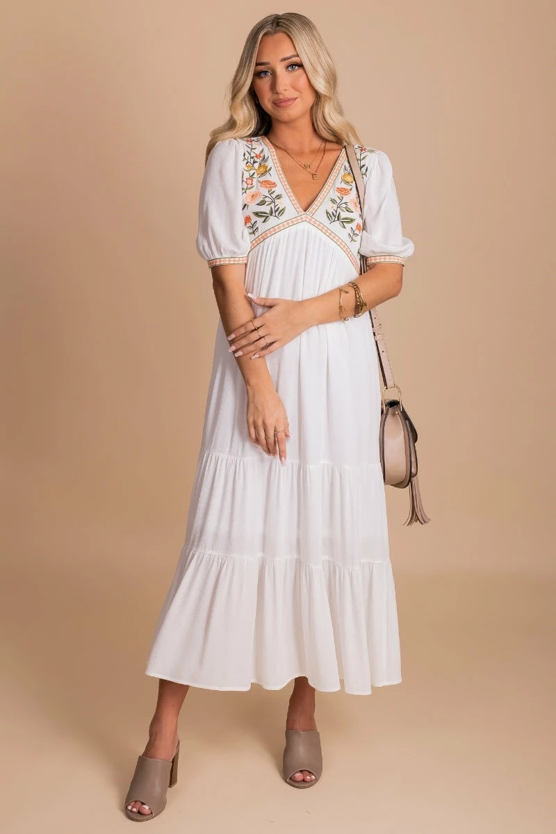 Our Fresh Flowers Maxi Dress is such gorgeous piece! This adorable dress features a v-neckline and stunning floral designs along the bodice and sleeves. You’ll fall in love the maxi length and full lining! The lightweight, high-quality material creates a flowy and flattering silhouette. Pair our Fresh Flowers Maxi Dress with your favorite heeled sandals to create a gorgeous outfit that’ll be perfect for your next special event!