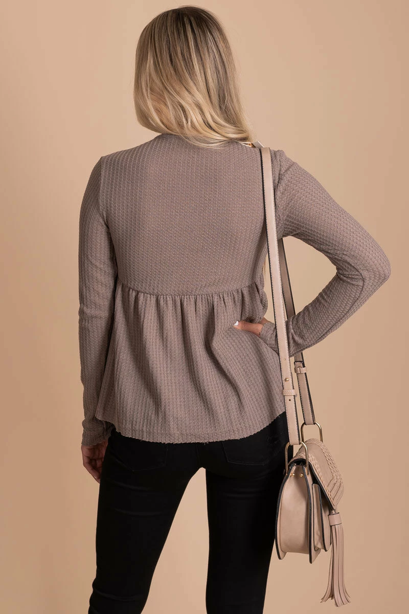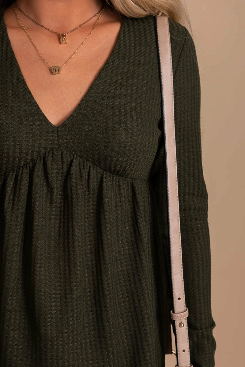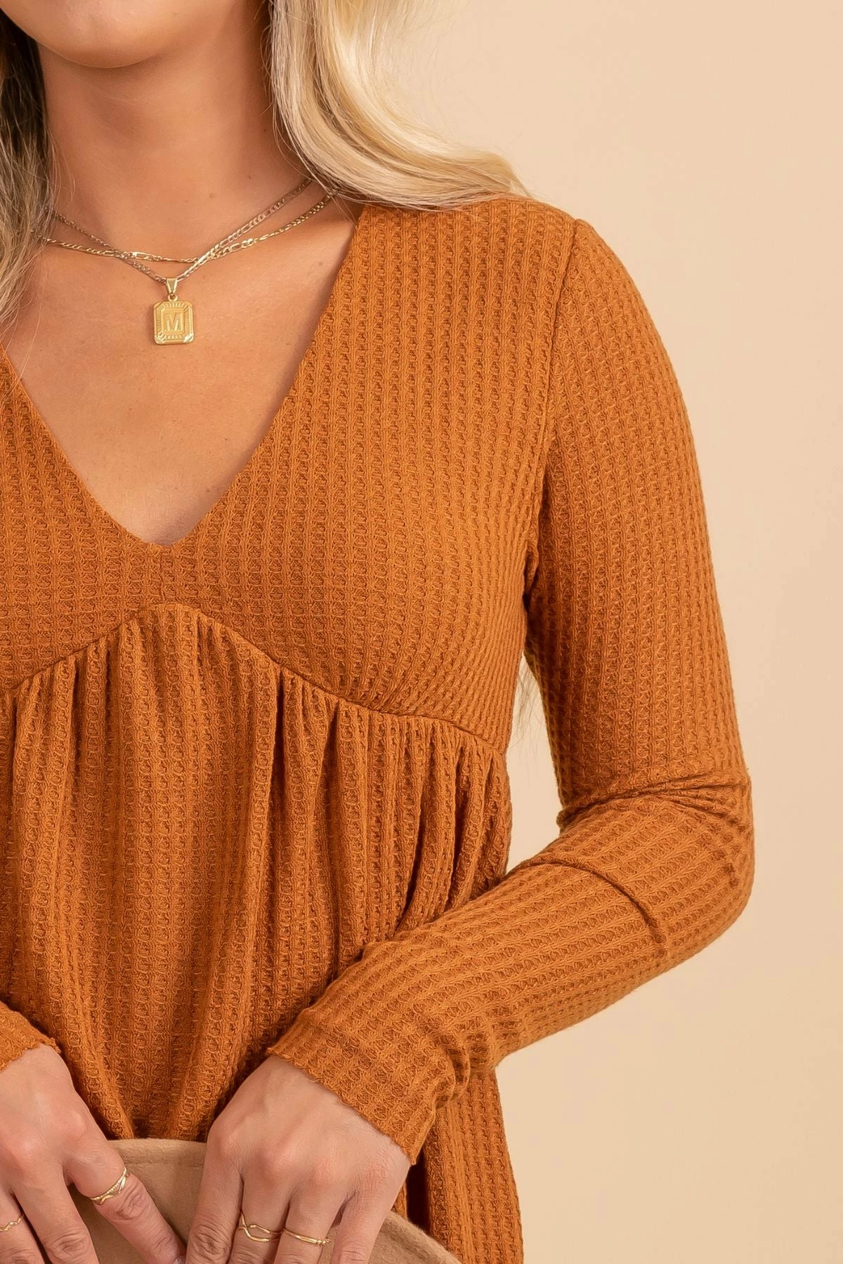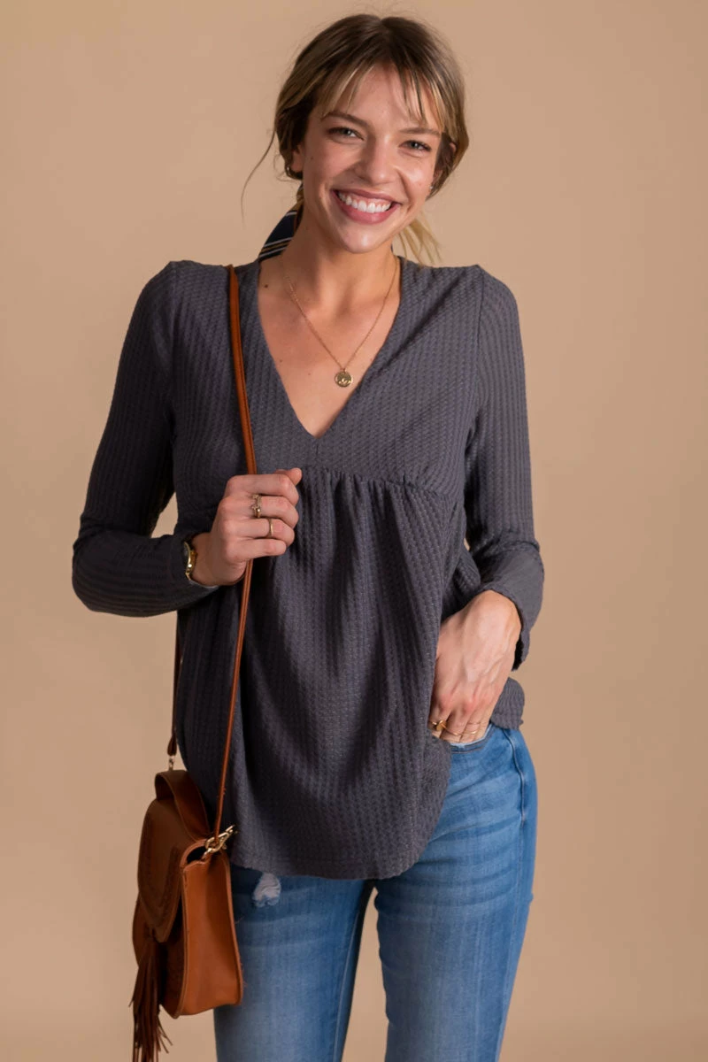 Our Here With You Long Sleeve Waffle Top would be perfect for a cute back to school outfit or a date night out!