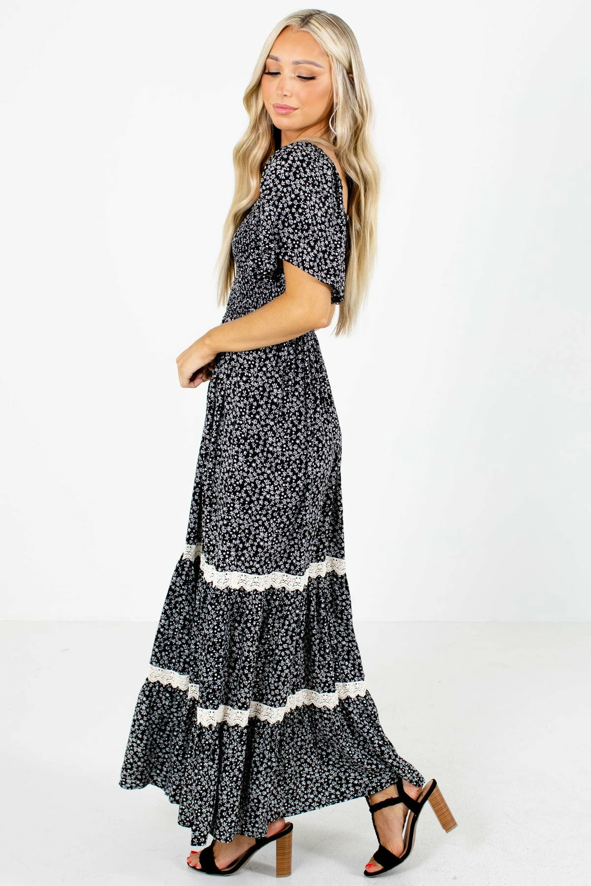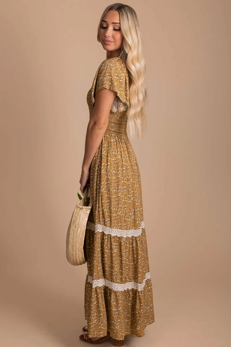 Pair our Spring in Your Step Floral Maxi Dress with your favorite heels! This dress would be perfect for maternity, engagement, or family photoshoot!