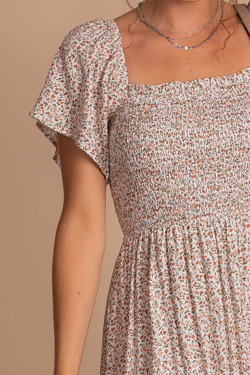 - Floral Pattern, Smocked Detailing