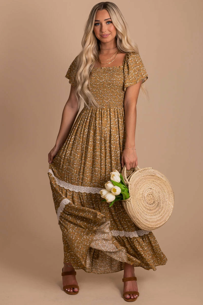 You’ll look and feel beautiful in our new Spring in Your Step Floral Maxi Dress! This adorable dress features a beautiful floral pattern. We’re in love with the smocked bodice, flutter sleeves, and crochet accents! The lightweight, high-quality material creates a comfortable and flattering fit.
