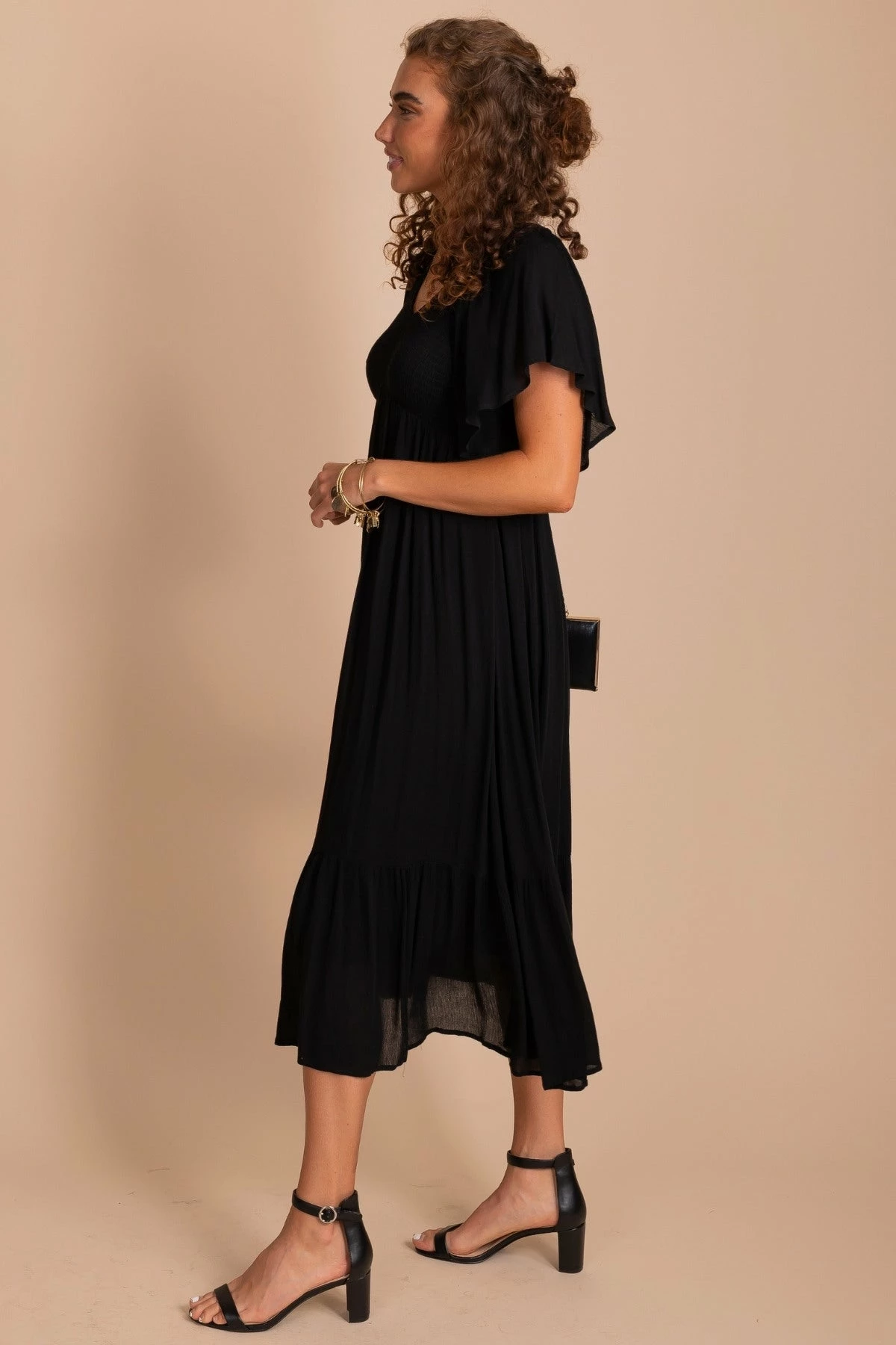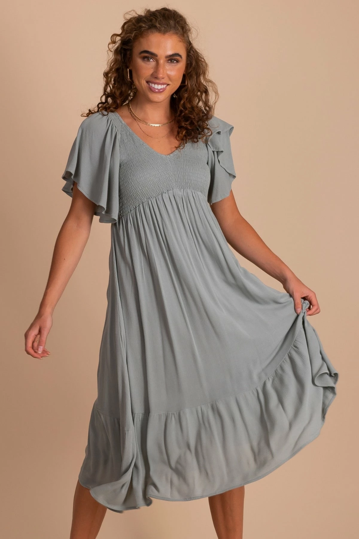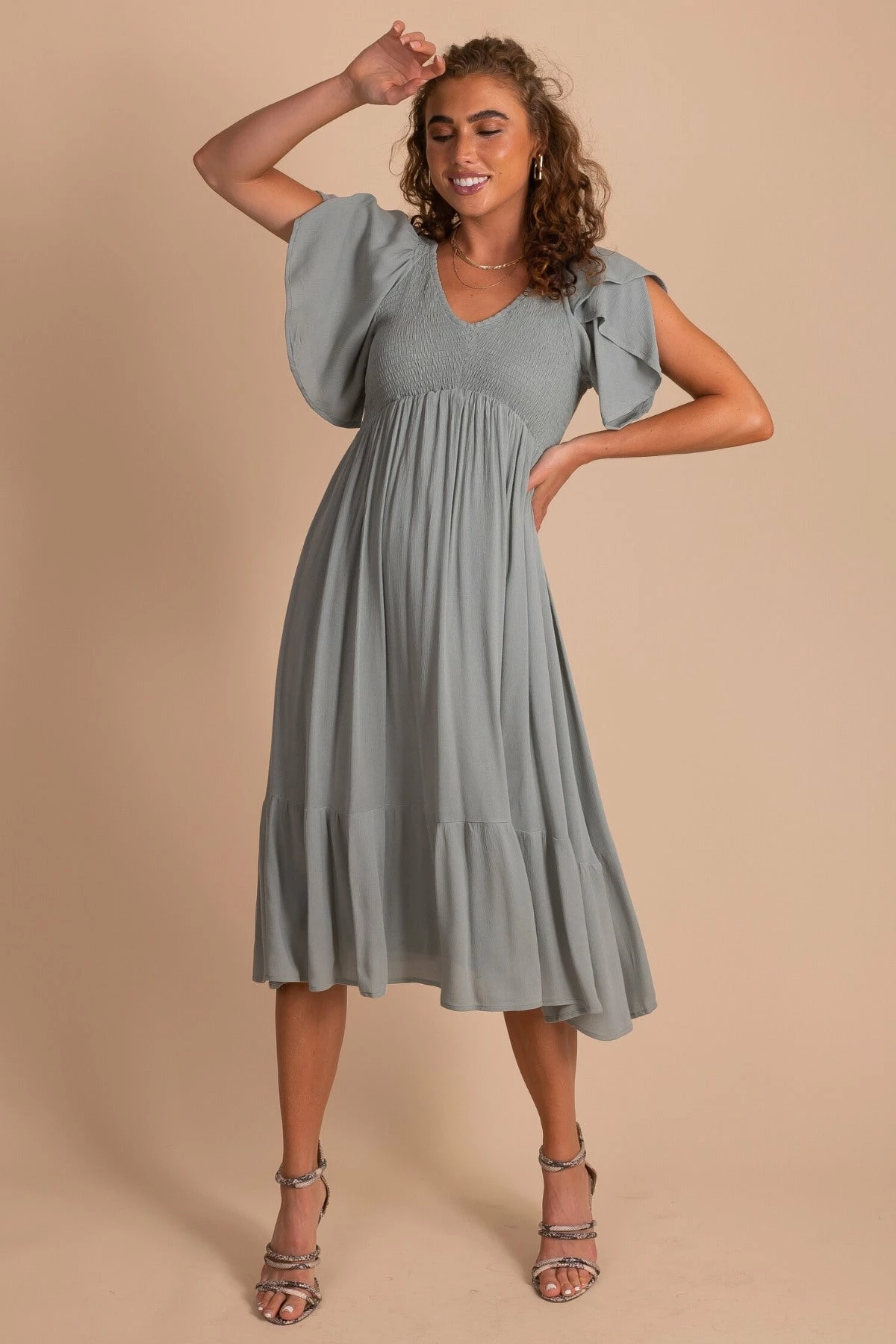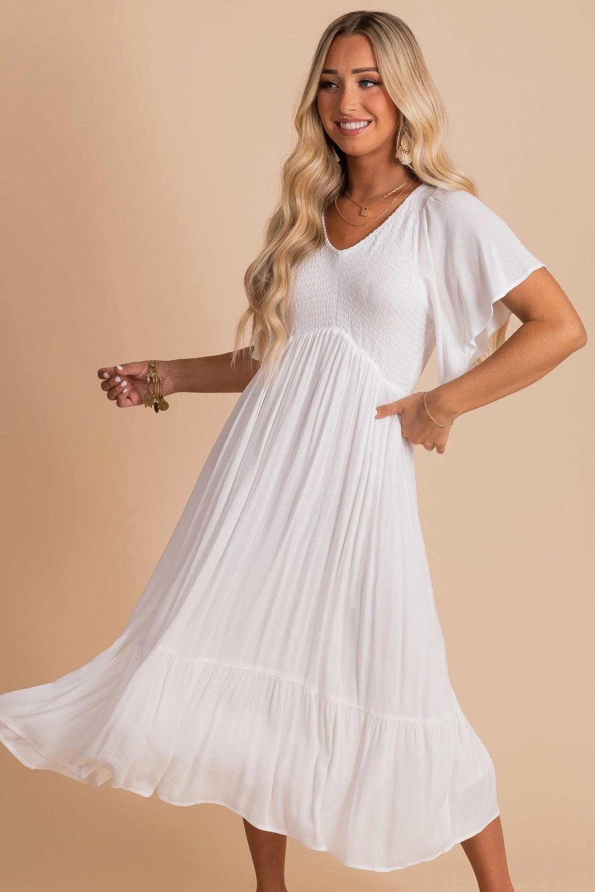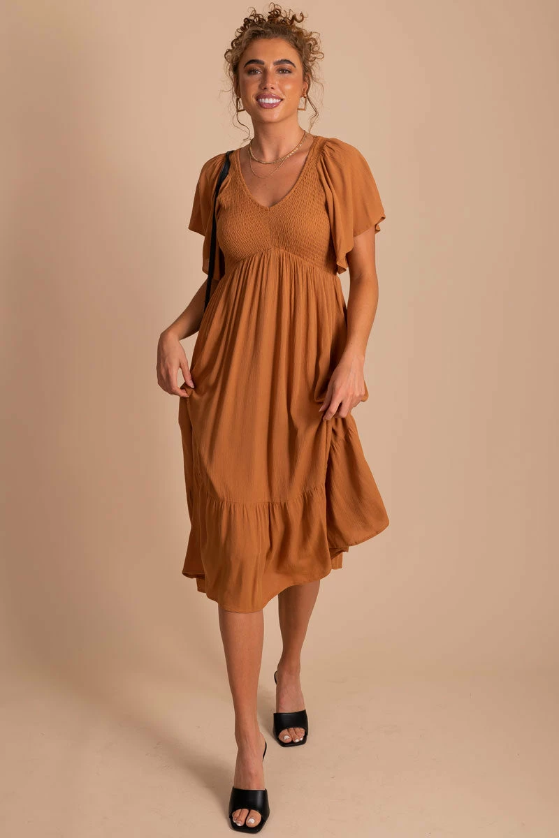 You’ll look magical in our new Touring Rome Midi Dress! This adorable midi dress features a trendy smocked bodice. We’re in love with the flutter style sleeves and v-neckline! The high-quality material and interior lining work together to makes this dress comfortable and easy to wear. Pair our Touring Rome Midi Dress with heeled sandals to recreate our model’s adorable outfit!