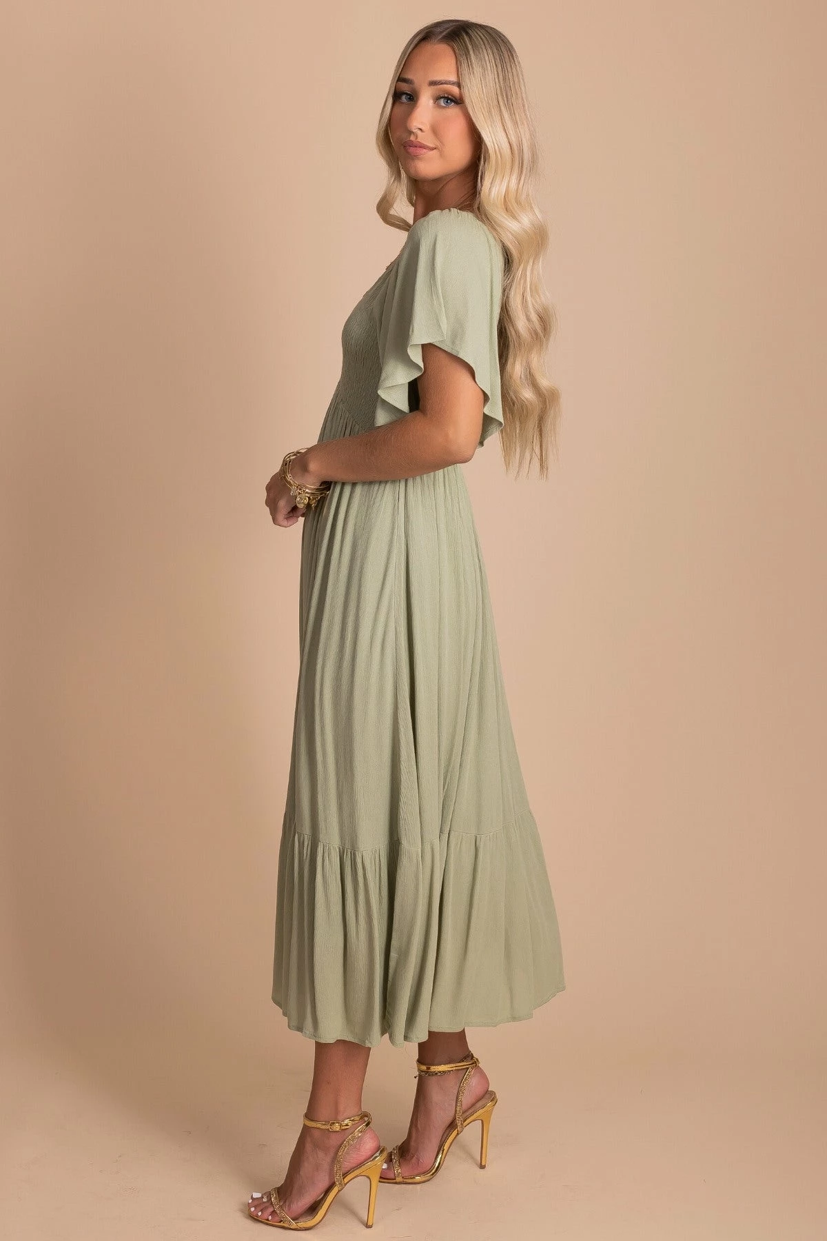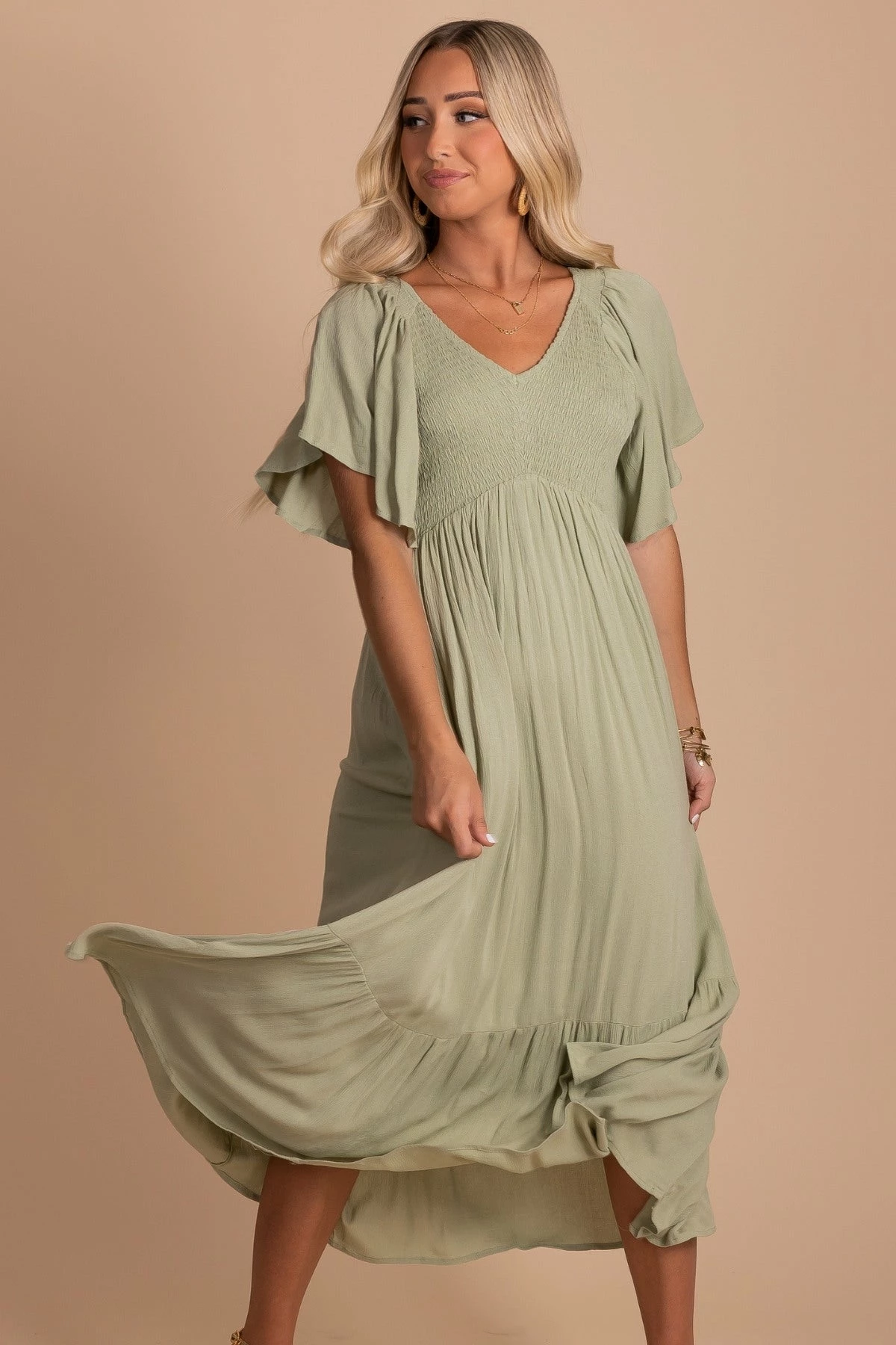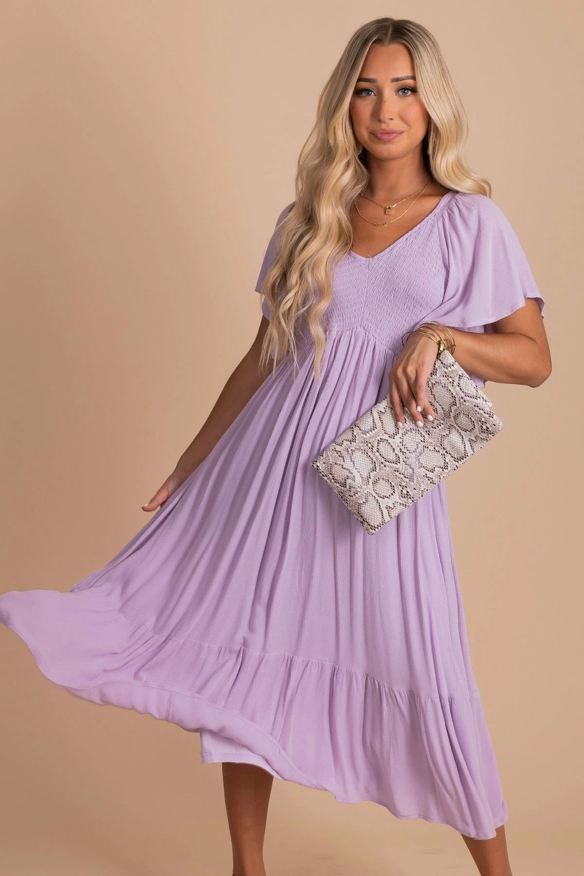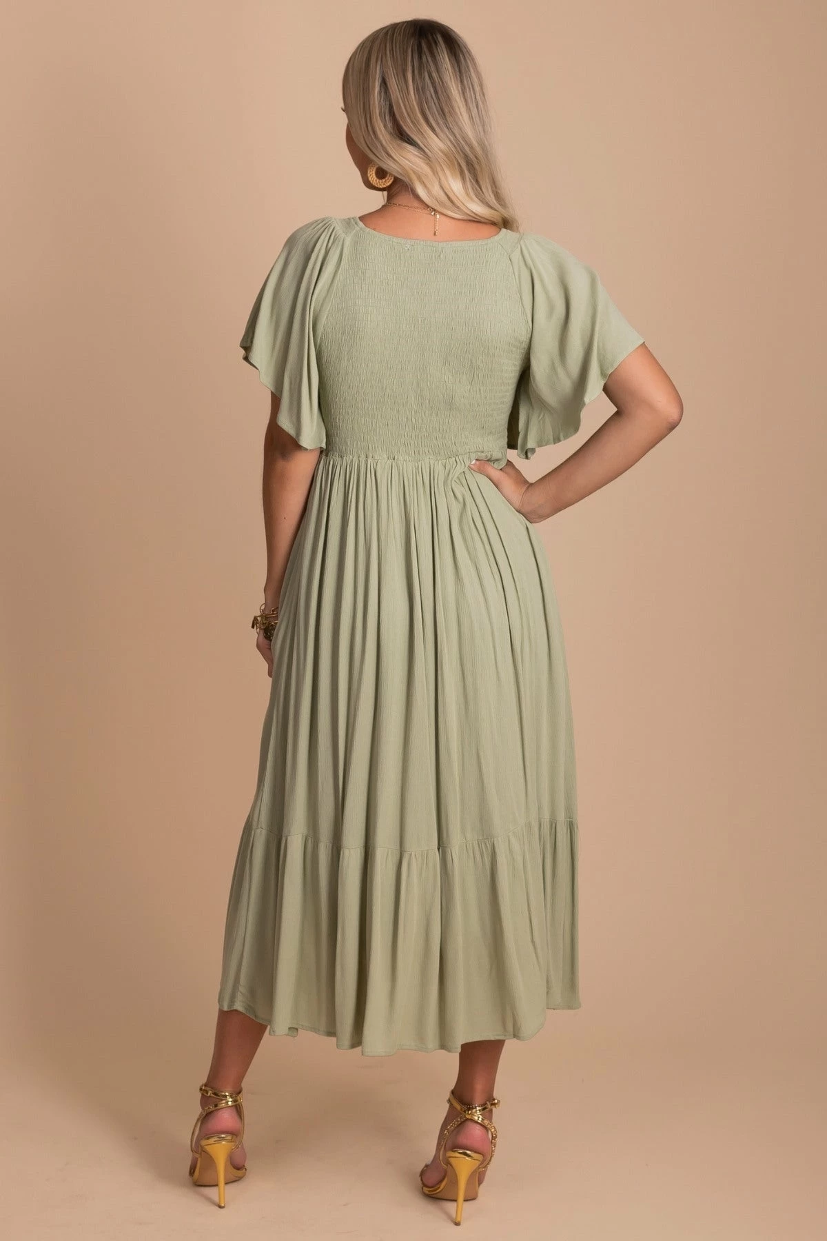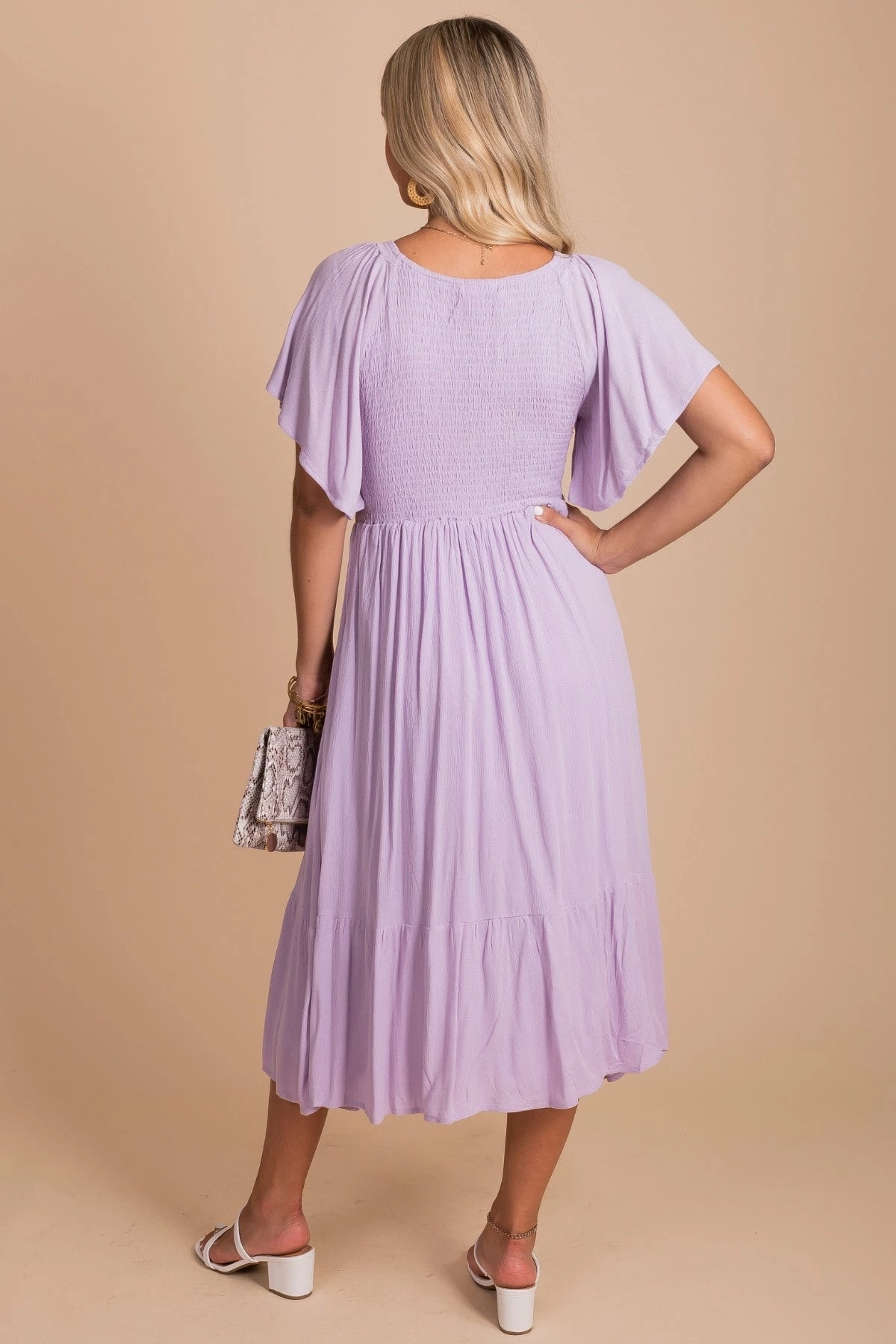 You’ll look magical in our new Touring Rome Midi Dress! This adorable midi dress features a trendy smocked bodice. We’re in love with the flutter style sleeves and v-neckline! The high-quality material and interior lining work together to makes this dress comfortable and easy to wear. Pair our Touring Rome Midi Dress with heeled sandals to recreate our model’s adorable outfit!