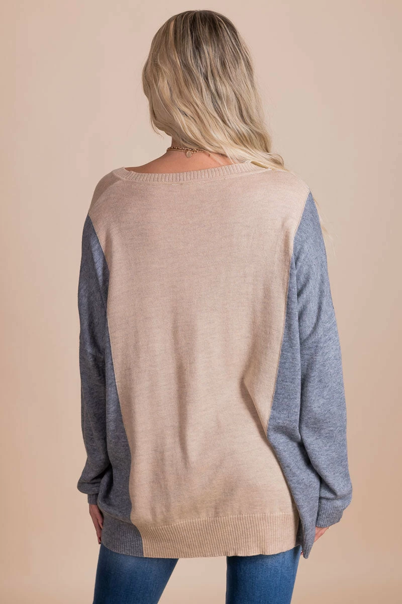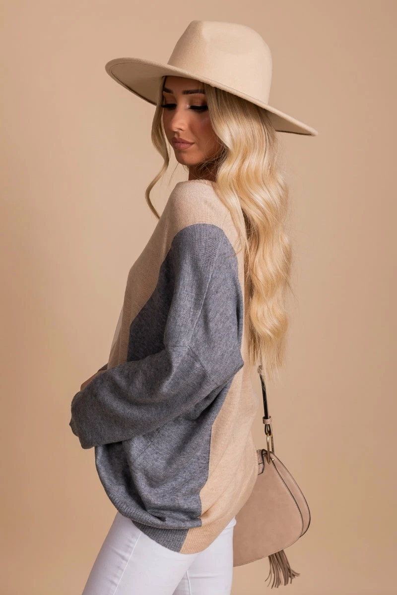 Our Fall Breeze Color Block Sweater would be perfect for a fall date night out or layered for a winter look!