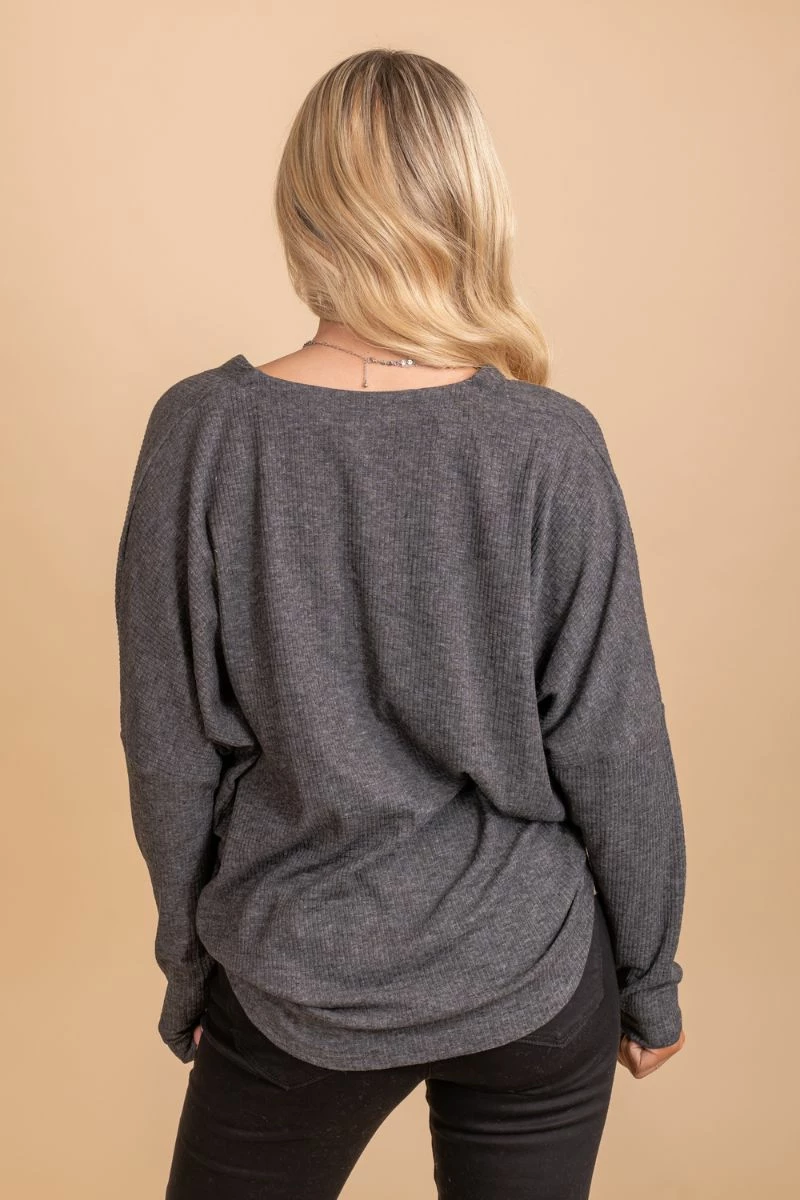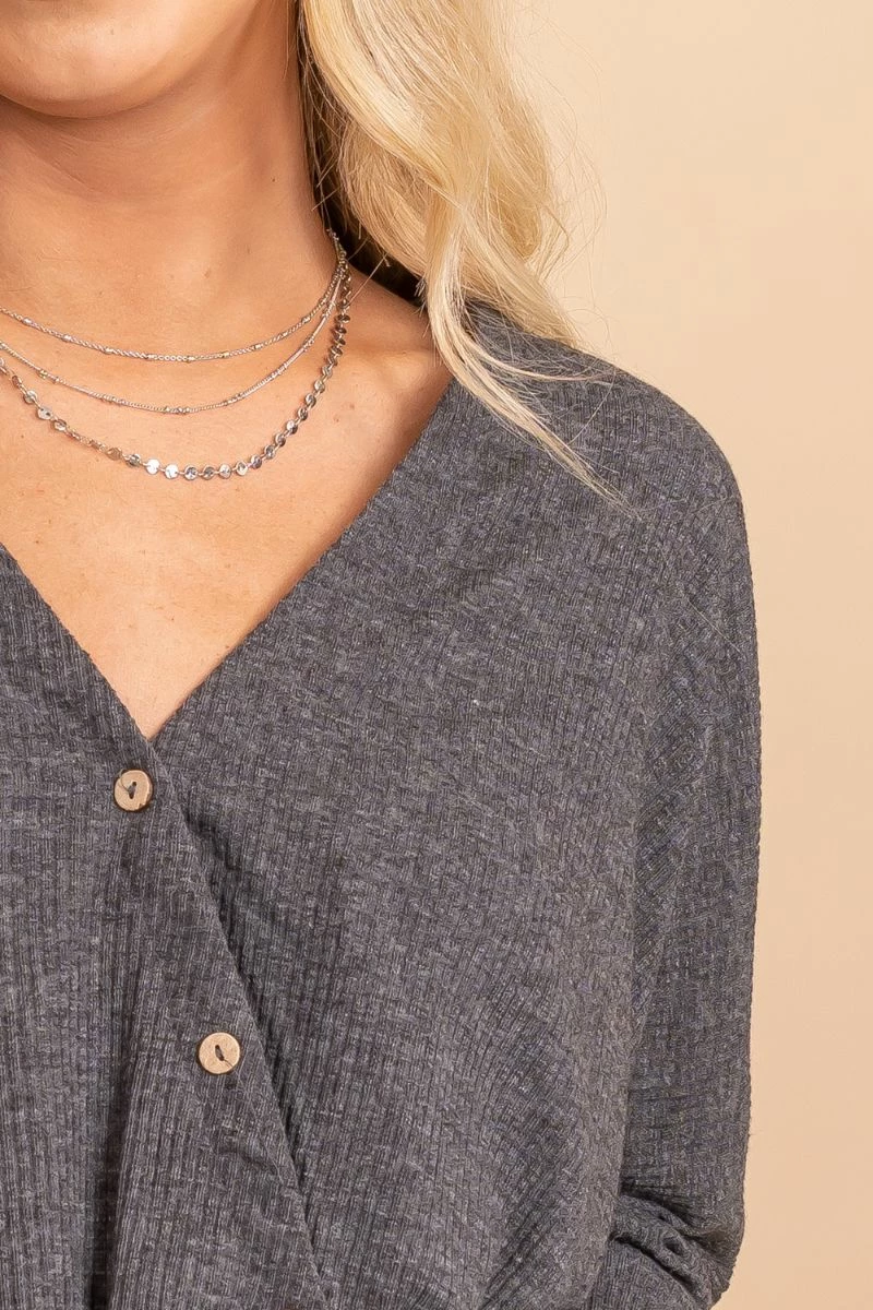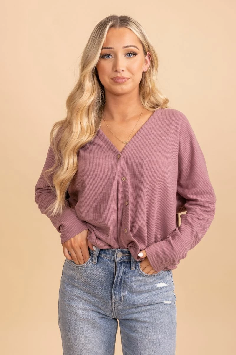 Our Eye For Love Ribbed Knit Top is a must-have! We’re obsessed with the ribbed knit material, long sleeves, and the trendy fit! It features a v-neckline, button details, and the cutest cinched waist!