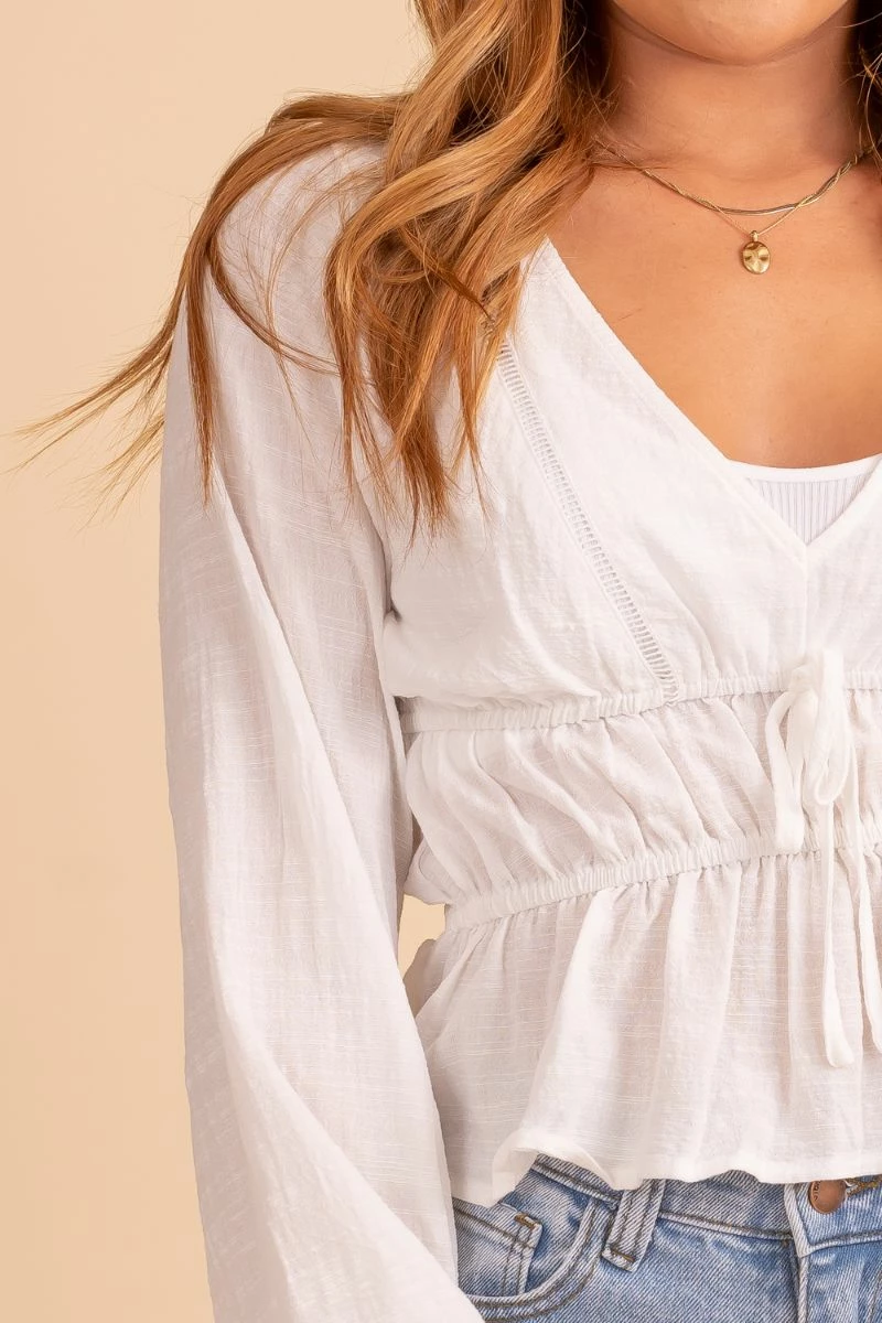 Our new Through The Clouds Cinched Top will quickly become your new favorite piece! We’re in love with the cinched detail, tie front, and v-neckline! The lightweight, high-quality material creates a comfortable and flattering silhouette.