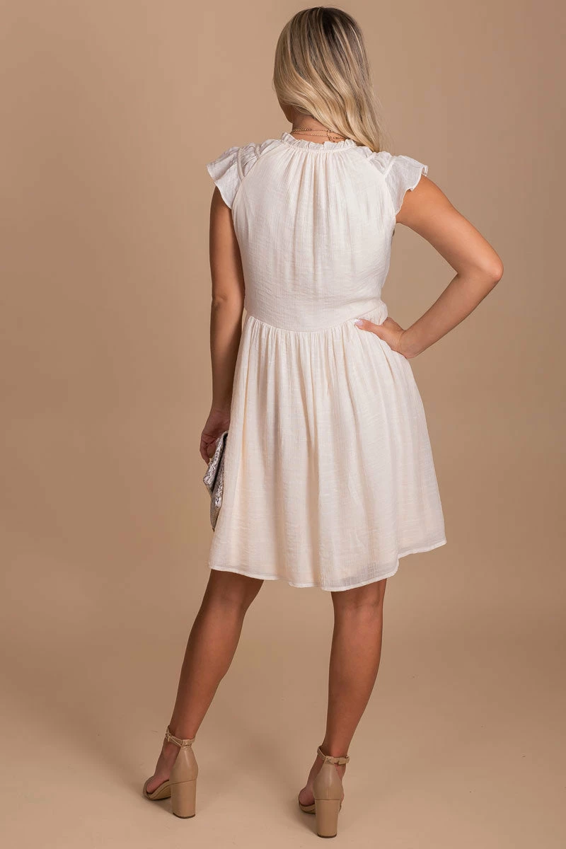 Our I’ll Be Waiting Flutter Sleeve Mini Dress would be perfect for a summer photoshoot, a bridal or baby shower, or for a date night out!