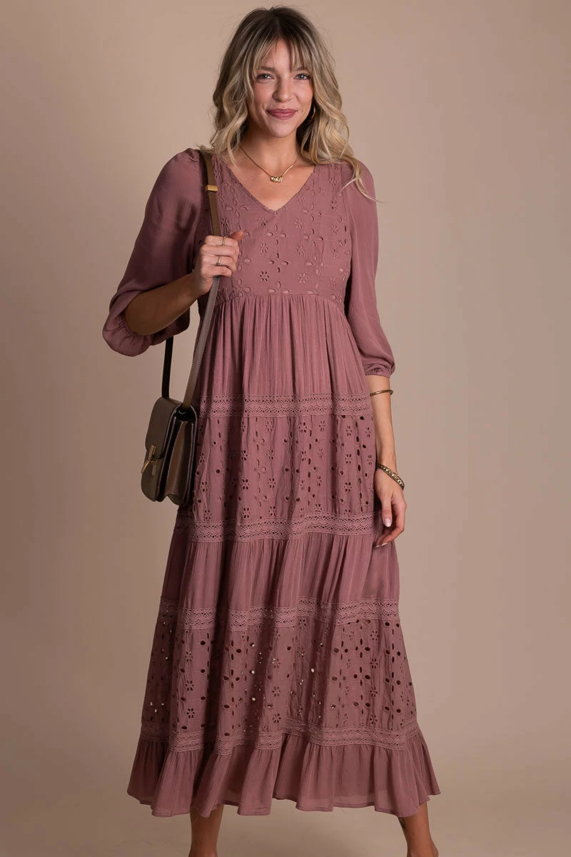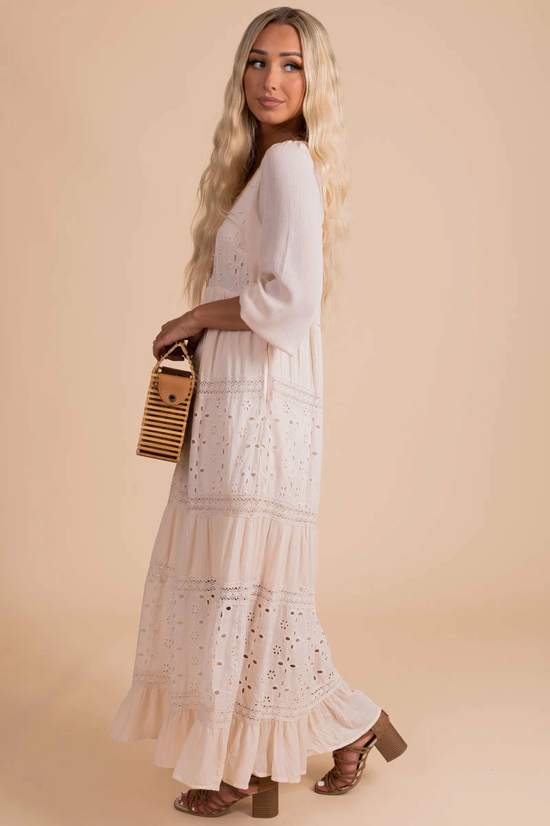 Our Make It Count Eyelet Detail Maxi Dress would be perfect for a summer photoshoot, a bridal or baby shower, or an outdoor wedding.