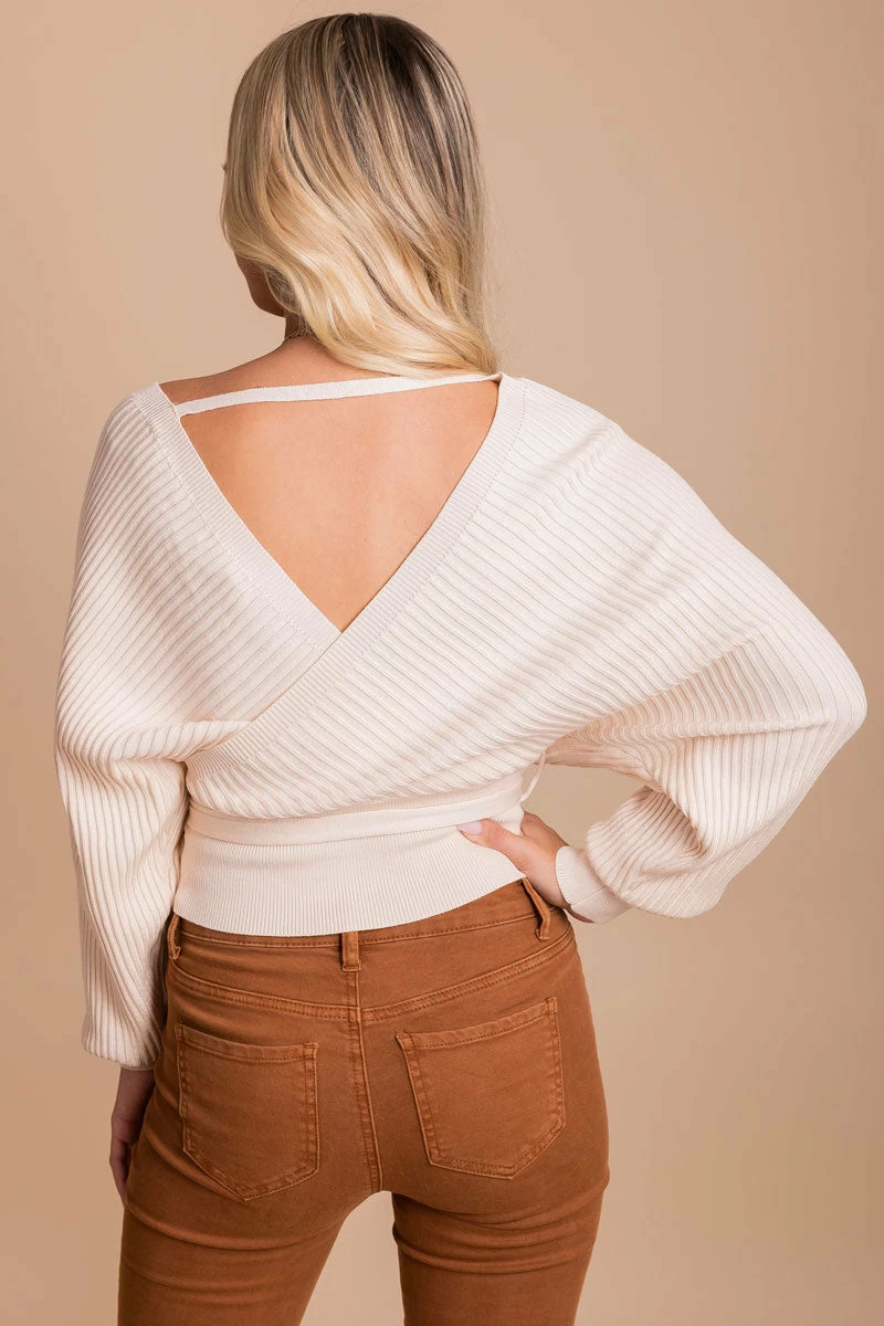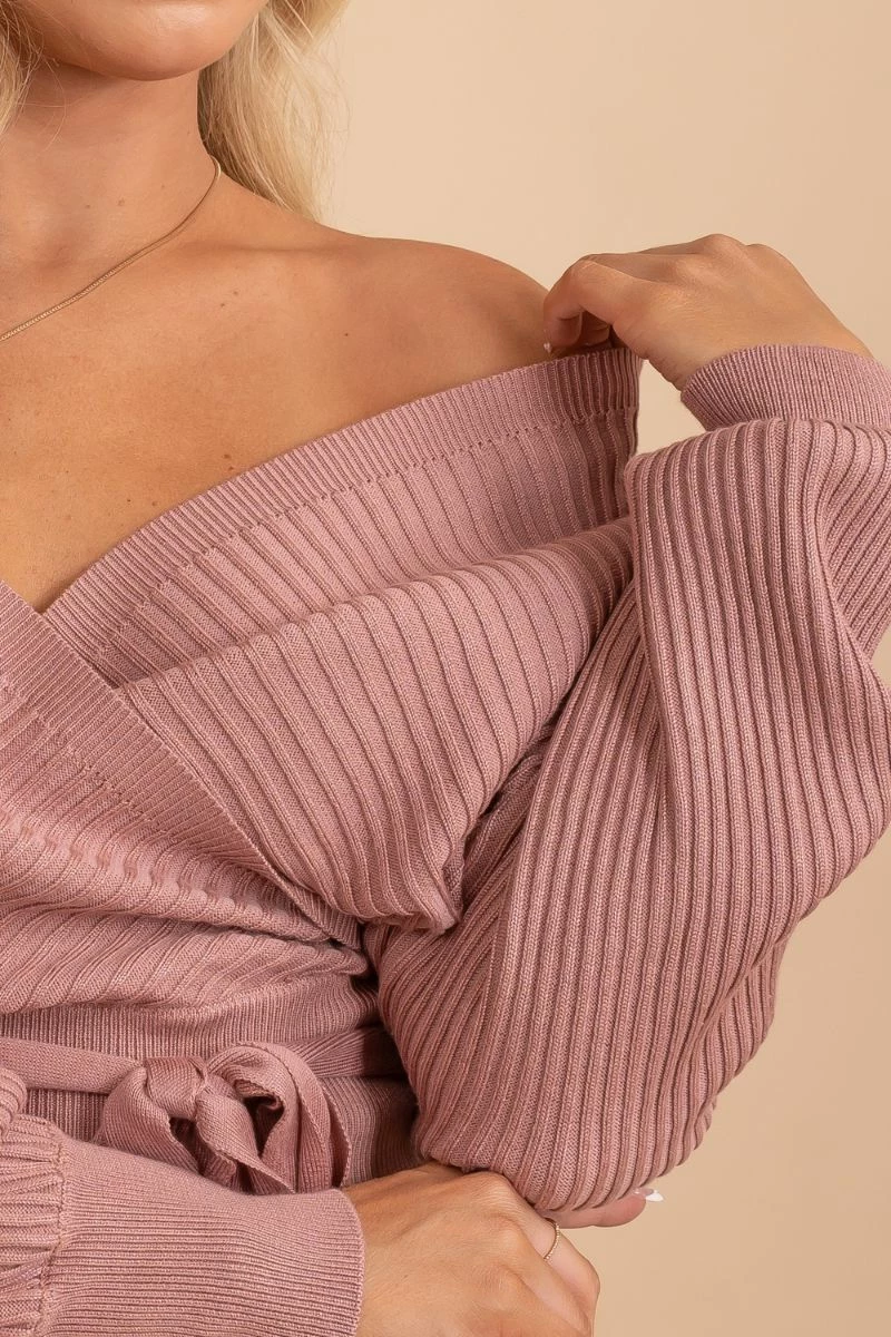 Our Warm My Heart Long Sleeve Wrap Sweater would be perfect for wearing to the office, on a date night, or lounging at home.