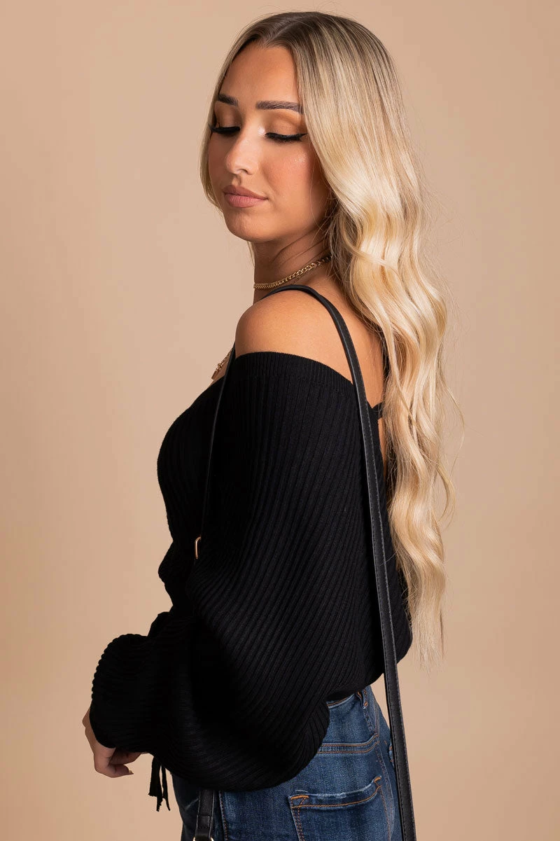 Our Warm My Heart Long Sleeve Wrap Sweater is a pretty fall must-have, perfect for dressing up or down this season! This sweater features long bubble sleeves, a wrap front, and a self-tie accent. The ribbed sweater material makes it perfect for autumn and winter!