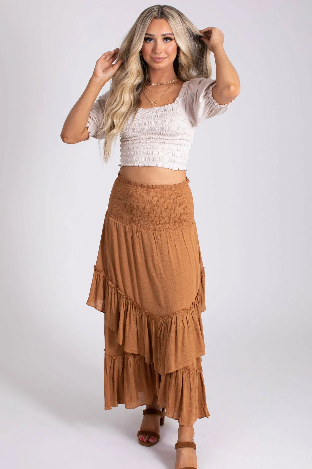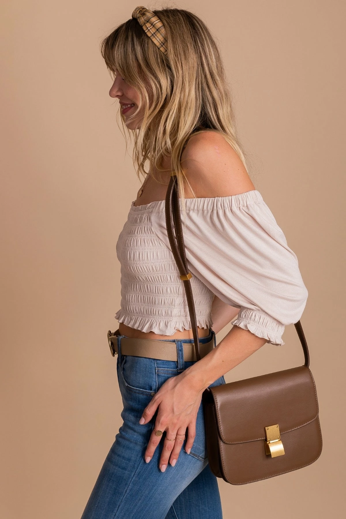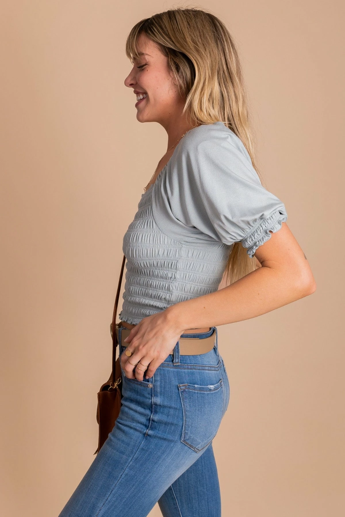 Our new From The Shore Crop Top is a fan favorite here at Bella Ella Boutique! The material is so soft, stretchy, and comfortable; we wouldn’t blame you if you wore it every day! Ruched detailing and puff sleeves add the perfect touch. Pair our From The Shore Ruched Top with your favorite jeans and sneakers for a fun, trendy outfit! -
