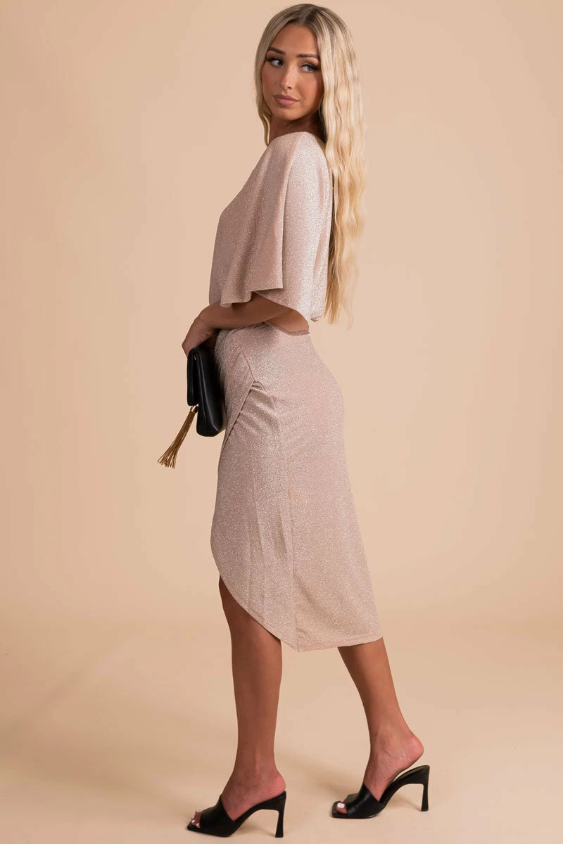 Our Stardust Soul One-Shoulder Midi Dress would be perfect for any special occasion like a school dance, a summer wedding, or for a fancy photoshoot!