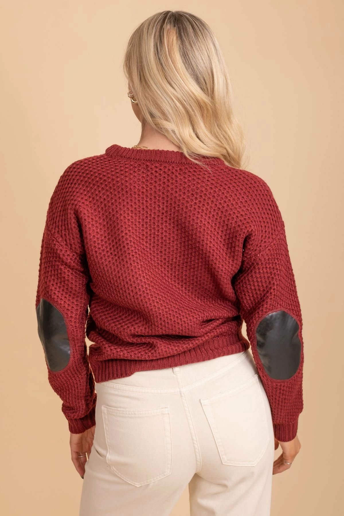 Our My Own Muse Knit Pullover Sweater is perfect for fall! This sweater features two cute fall color options, long sleeves, and dark brown patchwork detailing on the elbows! The soft, warm knit material will keep you warm and comfortable all season long!