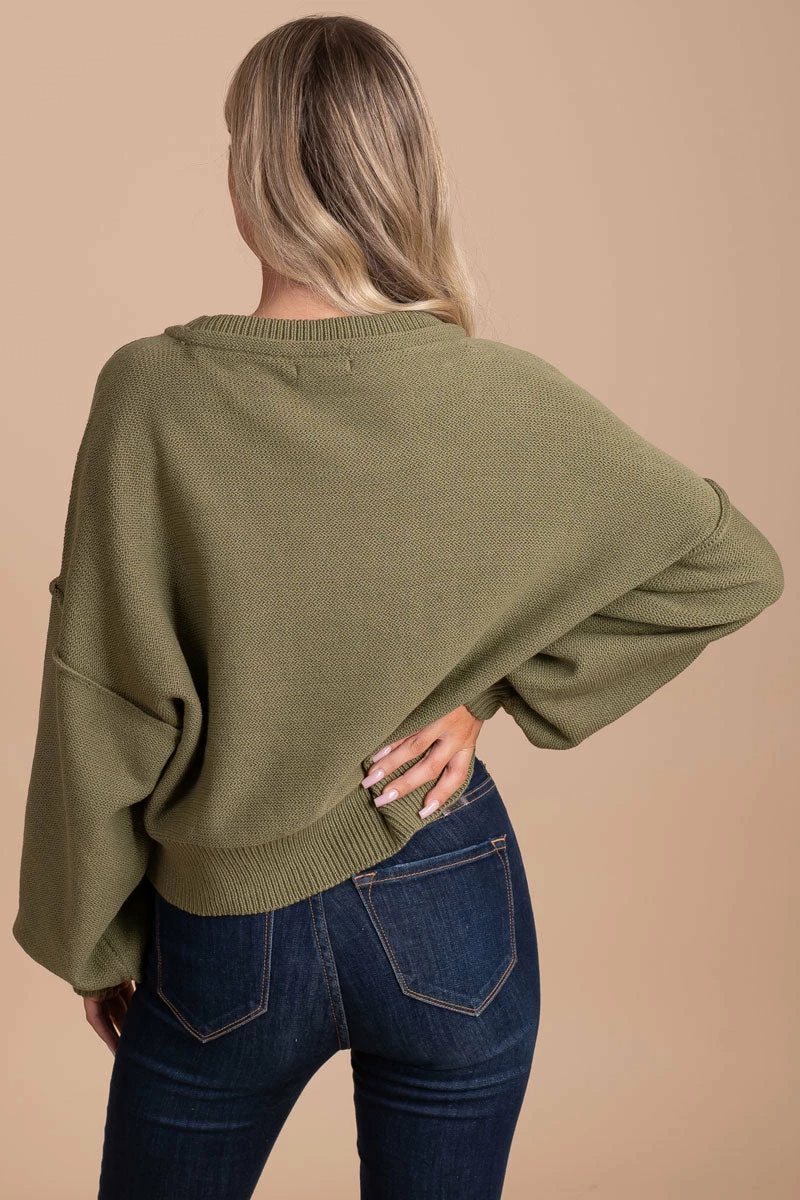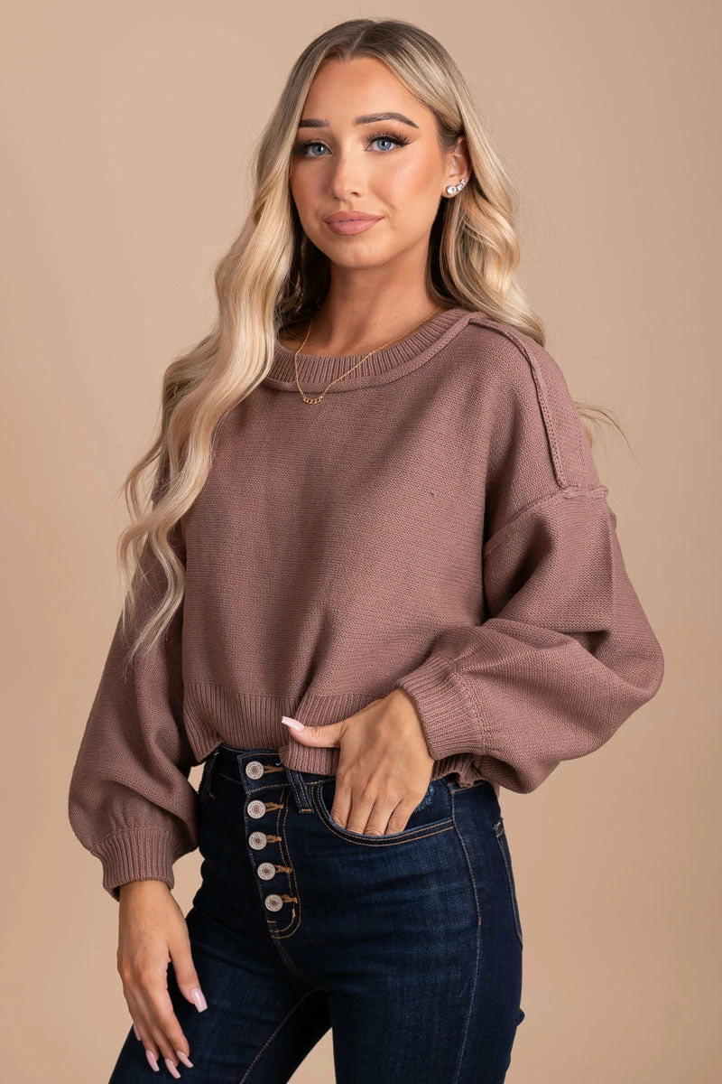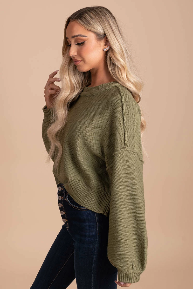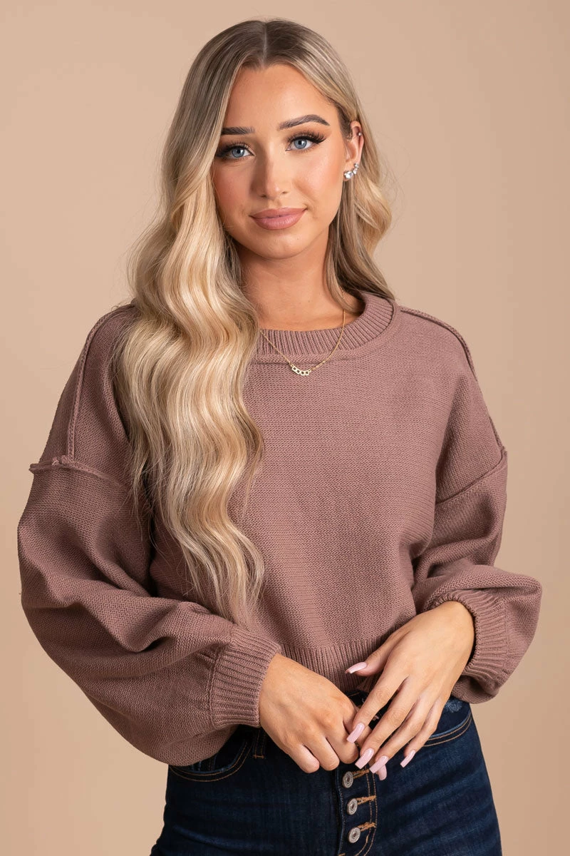 Our Never Let Me Go Cropped Sweater is a winter must-have! This sweater features three gorgeous color options, a cropped length, and long puff sleeves. The round neckline and visible seams make this sweater so unique! Pair your Never Let Me Go Cropped Sweater with your favorite high-waisted jeans and booties to create an adorable winter outfit!