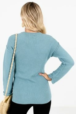 Bella Ella Boutique You Deserve It Blue Ribbed Sweater