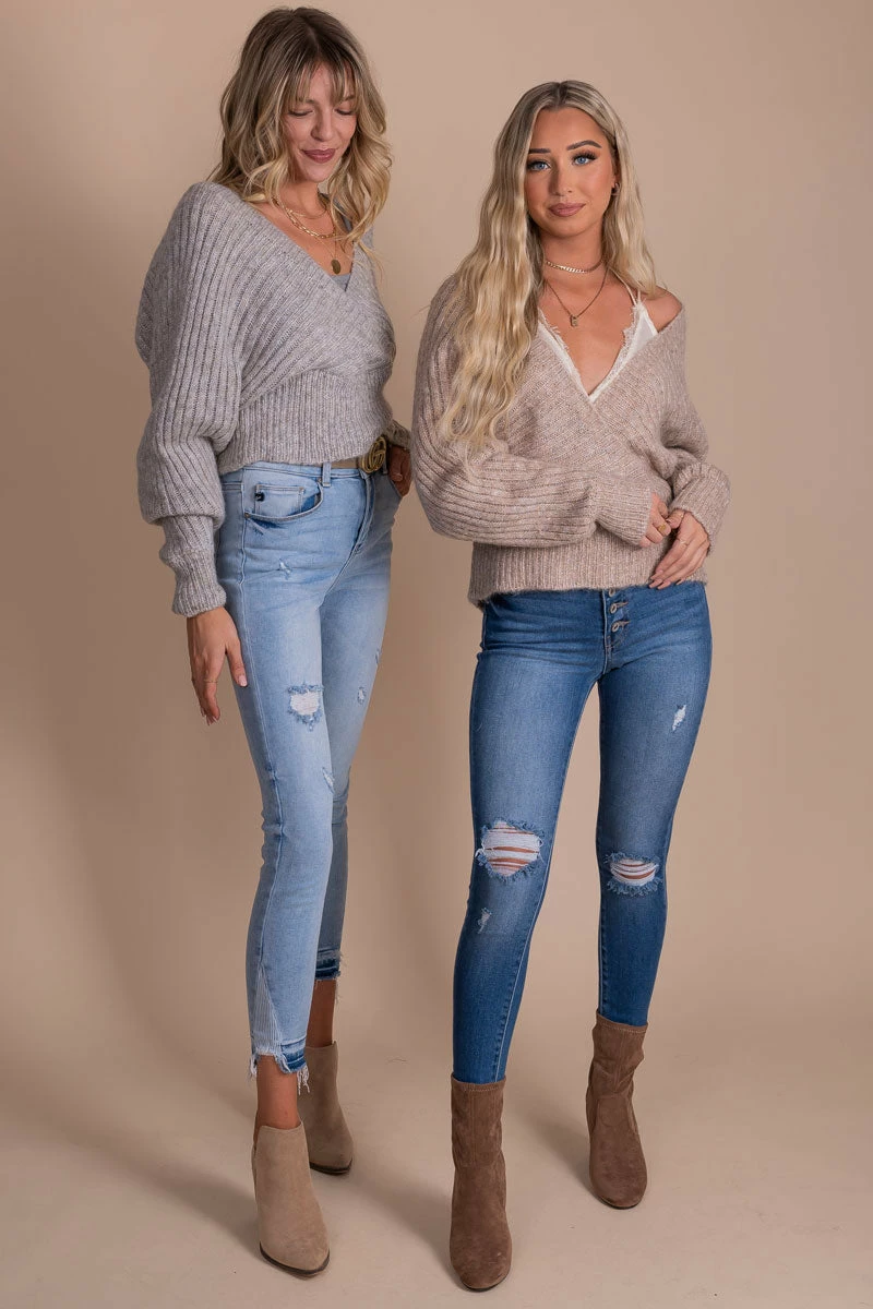 Our new Once In A Lifetime Long Sleeve Wrap Top is a fall must-have! We’re obsessed with the two cute color options and long sleeves. The wrap style bodice and cozy knit material are perfect for fall! Pair our Once In A Lifetime Long Sleeve Wrap Top with your favorite bottoms to create a cute outfit!